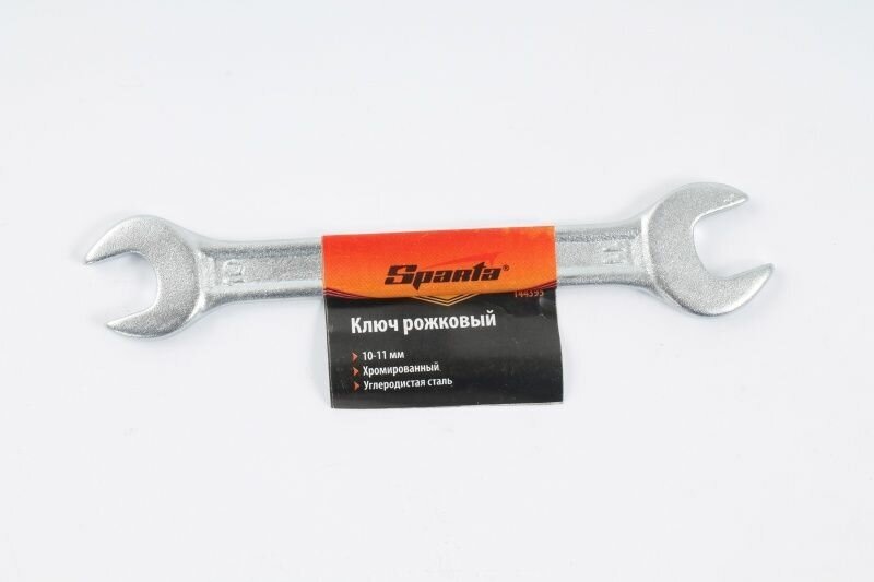 Хромированный рожковый ключ Sparta , 10 x 11 мм, предназначен для откручивания и закручивания болтов, гаек и других крепежей с шестигранным профилем. Рабочие губки имеются с двух сторон, размер зева составляет 10 и 11 мм. Губки расположены под углом к рукоятке, что облегчает работу в стесненных условиях. Инструмент используется для сборки и разборки оборудования, при проведении монтажных работ, будет полезен дома, на даче или в гараже.