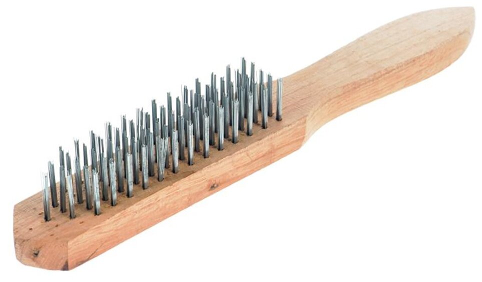 | Прочие особенности и свойства | Щетка металлическая с деревянной рукояткой имеет стальную проволочную щетину в деревянном корпусе. Используется для грубой зачистки рабочих металлических поверхностей. |