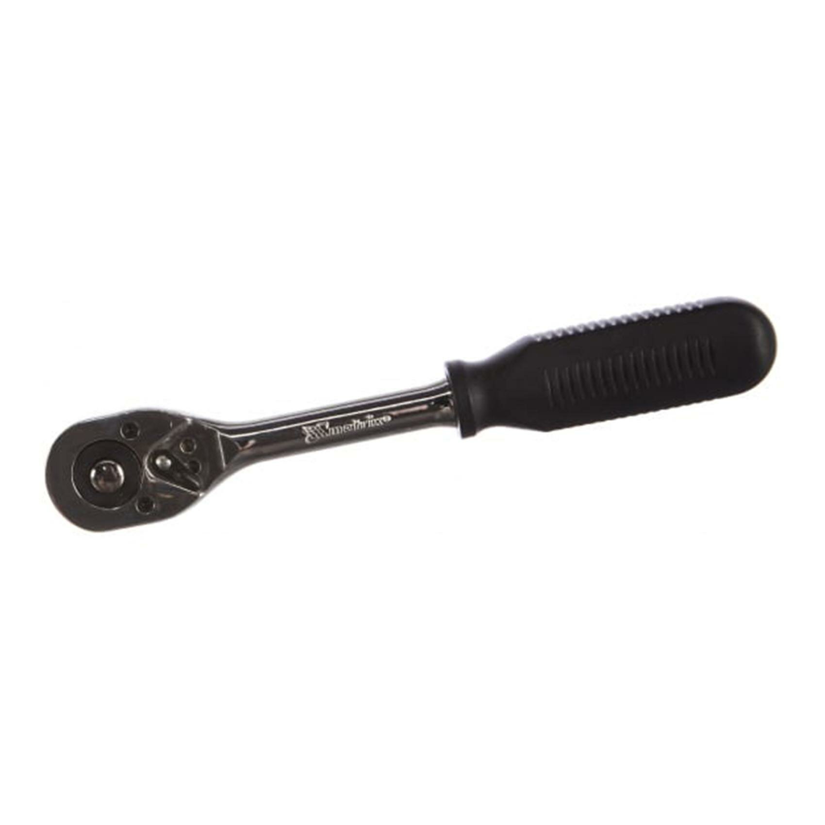 Хромированный ключ-трещотка Matrix с переключателем, из стали CrV, с присоединительным размером 3/8"", — ручной инструмент для монтажа и демонтажа резьбовых соединений. Совместим с торцевыми головками, имеющими посадочное гнездо соответствующего размера. Храповой механизм облегчает работу в труднодоступных местах. Инструмент применяется для ремонта техники, автомобилей, также используется в быту.