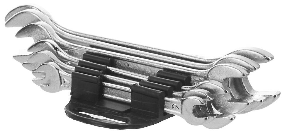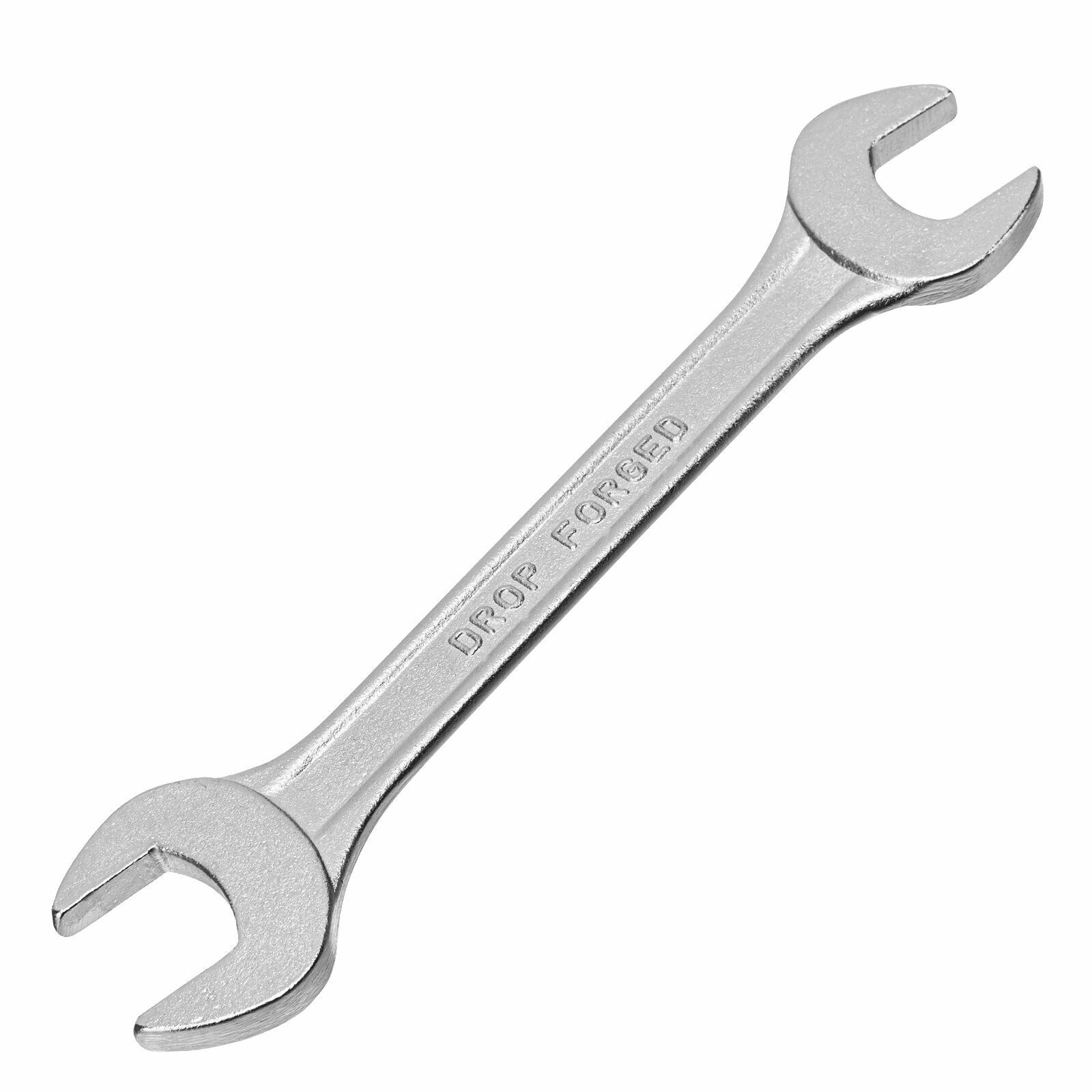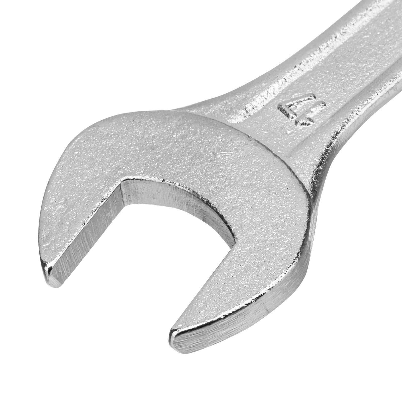 | Прочие особенности и свойства | Ключи изготовлены из углеродистой стали. Твердость материала рабочей части 42 HRc (требования ГОСТ – 41–46 HRc). Имеют надежное защитное покрытие из хрома. Упакованы в полиэтилен. Ключи гаечные двусторонние с открытым зевом предназначены для монтажа демонтажа резьбовых соединений. |
