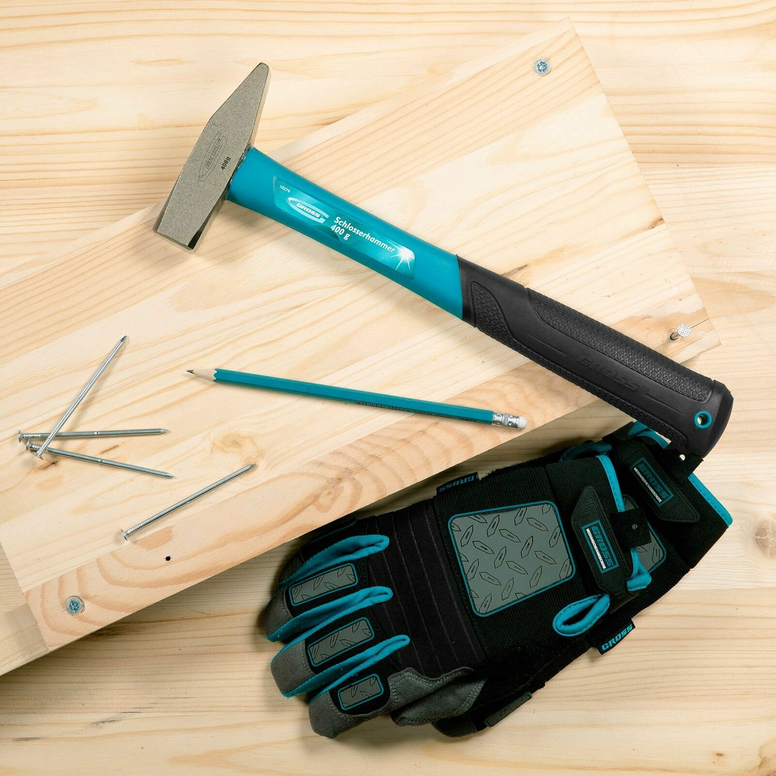 Слесарный молоток GROSS имеет боек из стали и обрезиненную фибергласовую рукоятку, которая обеспечивает надежную фиксацию инструмента в руке.