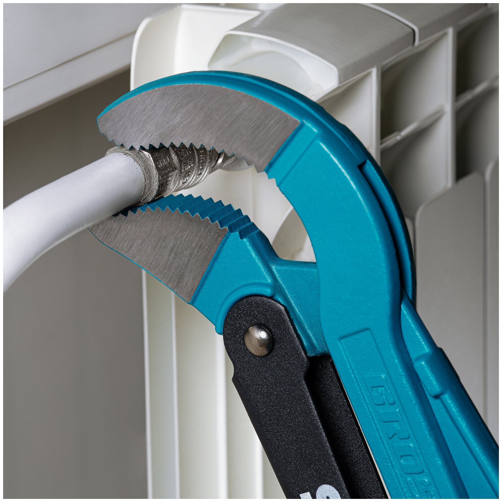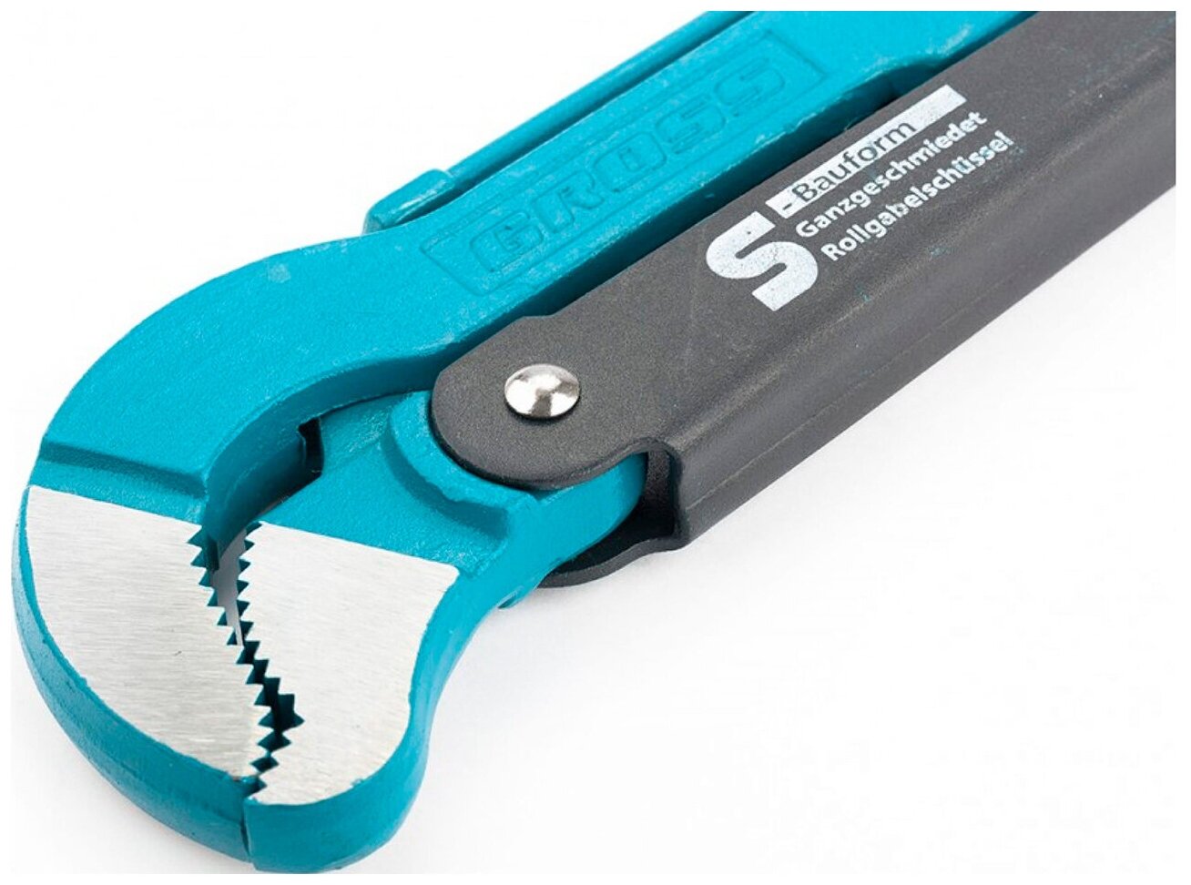 Ключ трубный рычажный типа S усиленной конструкции, применяется при повышенных нагрузках. Предназначен для захватывания и вращения труб и соединительных частей трубопроводов. Изготовлен из высококачественной хромванадиевой стали. Имеет порошковое антикоррозийное покрытие. Губки дополнительно закалены токами высокой частоты до твердости 57-60 HRс. Прогрессивная форма зуба с наклоном против направления вращения обеспечивает самоблокируемый захват деталей. Верхняя ручка имеет выштампованный Т-образный профиль. Регулировочная гайка снабжена стопорным кольцом.