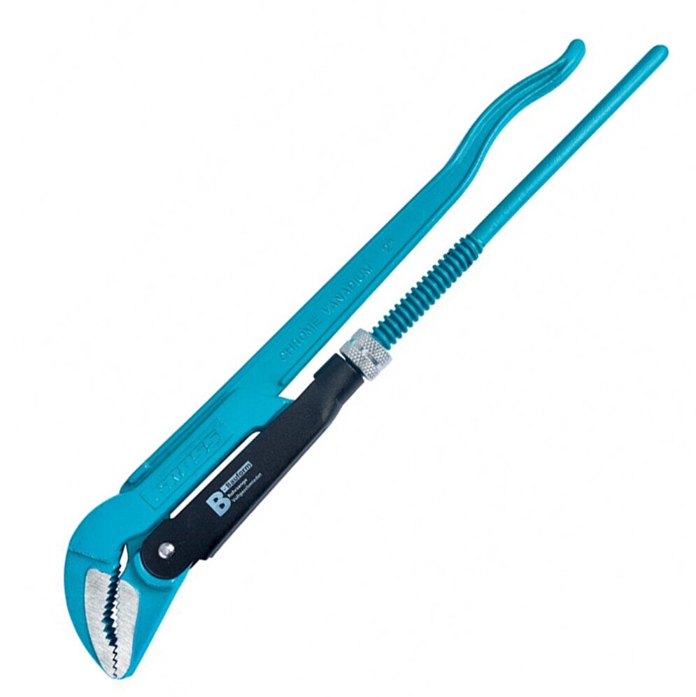 Ключ трубный рычажный типа В усиленной конструкции, применяется при повышенных нагрузках. Предназначен для захватывания и вращения труб и соединительных частей трубопроводов. Изготовлен из высококачественной хромованадиевой стали. Имеет порошковое антикоррозийное покрытие. Губки дополнительно закалены токами высокой частоты до твердости 57-60 HRС. Прогрессивная форма зуба с наклоном против направления вращения обеспечивает самоблокируемый захват деталей. Верхняя ручка имеет выштампованный Т-образный профиль. Регулировочная гайка снабжена стопорным кольцом.