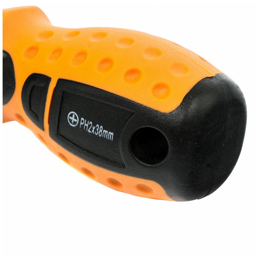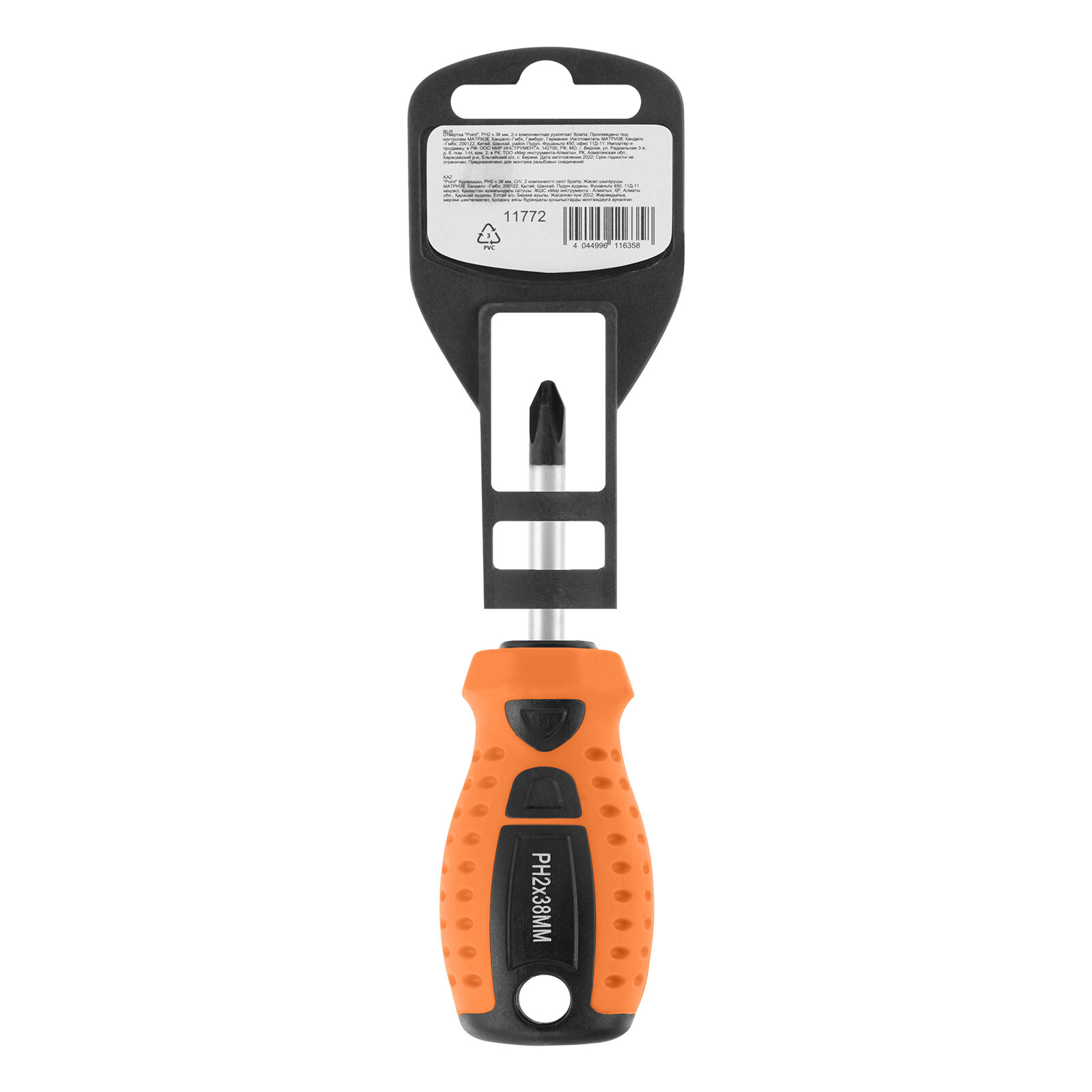 Отвертка Sparta Point , из стали CrV, с 2-х компонентной рукояткой, подходит для монтажа/демонтажа крестового крепежа PH2. Она поможет мастерам провести мелкие бытовые работы в доме или автомастерской. Отвертка оснащена укороченным стержнем 38 мм для удобства работы в труднодоступных местах.