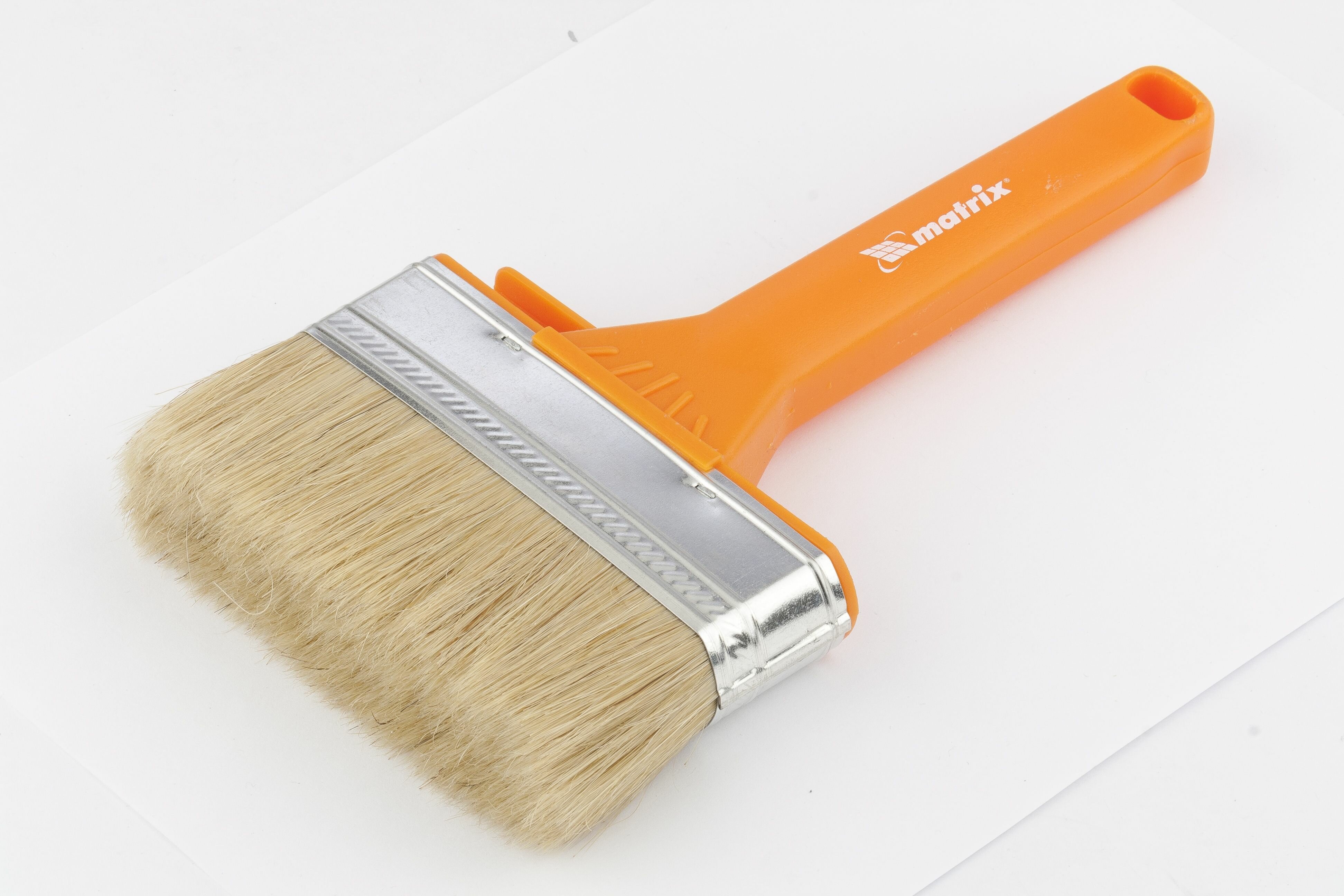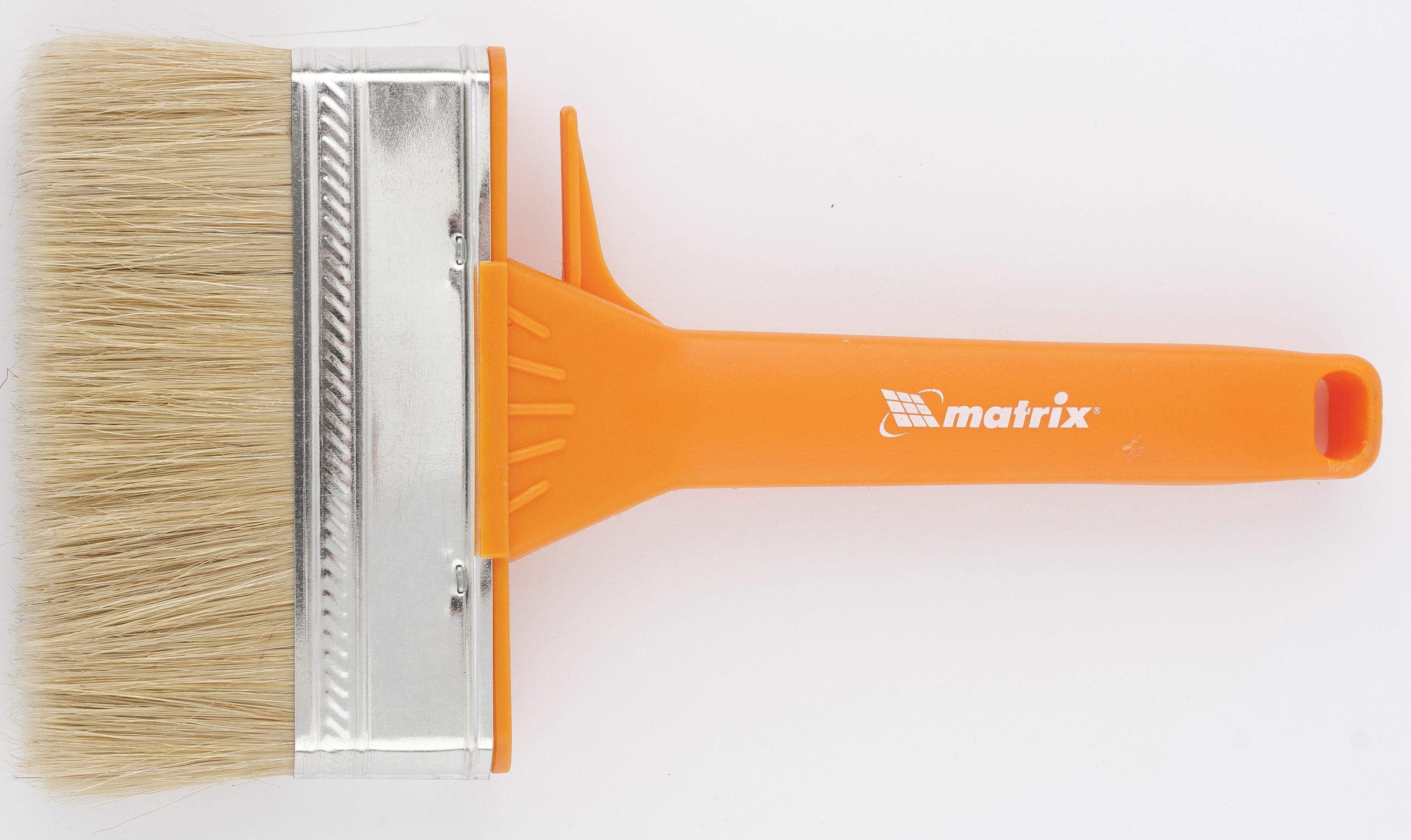 Плоская кисть MATRIX Color Line ФАСАД 120х25 мм - инструмент для работ с большими площадями. Щетина хорошо впитывает краску и равномерно распределяет её по поверхности. Данная кисть подходит для работ с ЛКМ, эмалями и лаками.