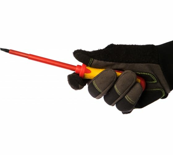Отвертка Matrix Insulated , SL5,5 x 125 мм, из стали CrMo, с двухкомпонентной рукояткой до 1000 В, используется при проведении ремонтных с крепежом типа Slotted «минус». Благодаря диэлектрическому покрытию она выдерживает напряжение до 1000 В, поэтому оптимально подходит для настройки электрооборудования, установки розеток и др. Важно — техника безопасности запрещает работать под напряжением!