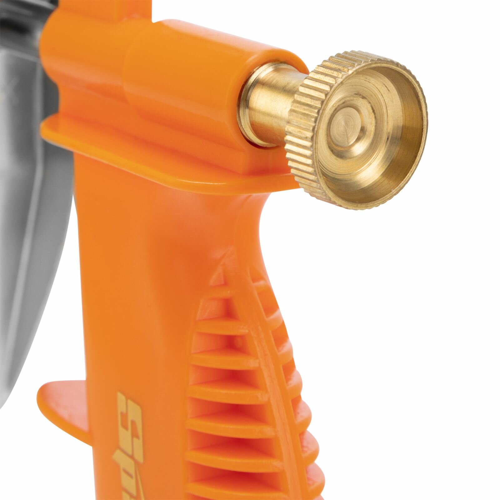 Пистолет для монтажной пены это простой в обращении инструмент, предназначенный для ремонтных и монтажных работ. С его помощью можно заполнить пустоты и полости, образовавшиеся при монтаже окон, дверей и т.д. Пистолет имеет облегченный корпус и удобную пластиковую рукоятку, что обеспечивает комфортную работу. Благодаря длинному стержню можно работать в труднодоступных местах.