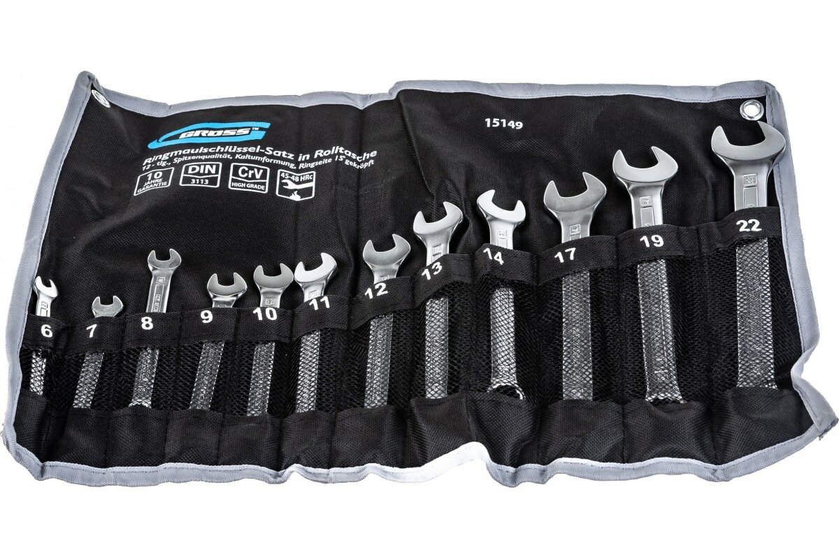 Набор комбинированных ключей GROSS (6-22мм) 12 шт CrV холодный штамп