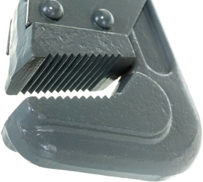 Трубный ключ КТР-5 (НИЗ) используется при работе с трубными соединениями. Зубья наклонены в противоположную от вращения сторону, что обеспечивает прочный и надежный захват.