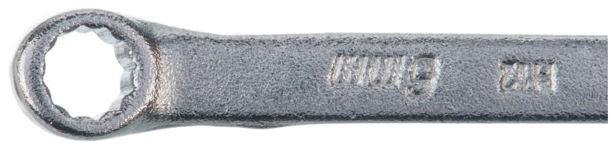 | Прочие особенности и свойства | Ключ изготовлен из углеродистой стали., Твердость материала рабочей части ключа 42 HRC (требования ГОСТ – 41–46 HRC)., Ключ имеет надежное антикоррозионное покрытие из хрома., Профиль кольцевого зева имеет 12 граней, что увеличивает площадь соприкосновения рабочих поверхностей и снижает риск деформации граней крепежа при монтаже., Угол наклона кольцевого зева относительно плоскости ключа в 15 градусов делает монтаж более удобным., Ключ гаечный комбинированный с открытым и кольцевым зевом предназначен для монтажа (демонтажа) резьбовых соединений. |