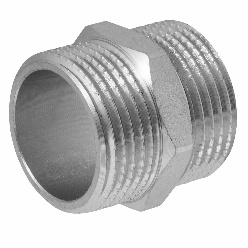 Предназначен для создания соединения между собой отрезков труб, шлангов или рукавов одного диаметра при помощи резьбы, расположенной на внешней стороне ниппеля.
