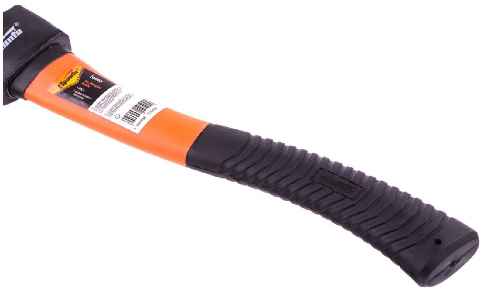 Топор Sparta с рабочей частью весом 800 г и фибергласовым топорищем рассчитан на рубку, тесание и колку древесины любых пород. Простое и в то же время универсальное изделие пригодится в хозяйстве при подготовке дров, рубке сучьев, небольших бревен, пеньков и т.д. Благодаря углу заточки рабочей кромки 20-30 градусов полотно легко врезается в древесину, поэтому топором комфортно работать.ПреимуществаПолотно выполнено из стали 45, которая гарантирует его надежность и долговечность при непрофессиональном применении.Прочность полотна достигается за счет его закалки до твердости 35-40 HRC на высоту до 25 мм от режущей кромки.Фибергласовая рукоятка прослужит долгое время, т.к. не разрушается от воздействия окружающей среды.Обрезиненное топорище с изгибом надежно лежит в руке и не проскальзывает.Вес полотна составляет 800 г, поэтому топор не оказывает большой нагрузки на руки.Топор с небольшой рукояткой 390 мм легко поместится в переноску для инструмента или рюкзак.Технические данные:Материал полотна: сталь Материал рукоятки: фибергласДлина: 390 ммВес полотна: 800 г