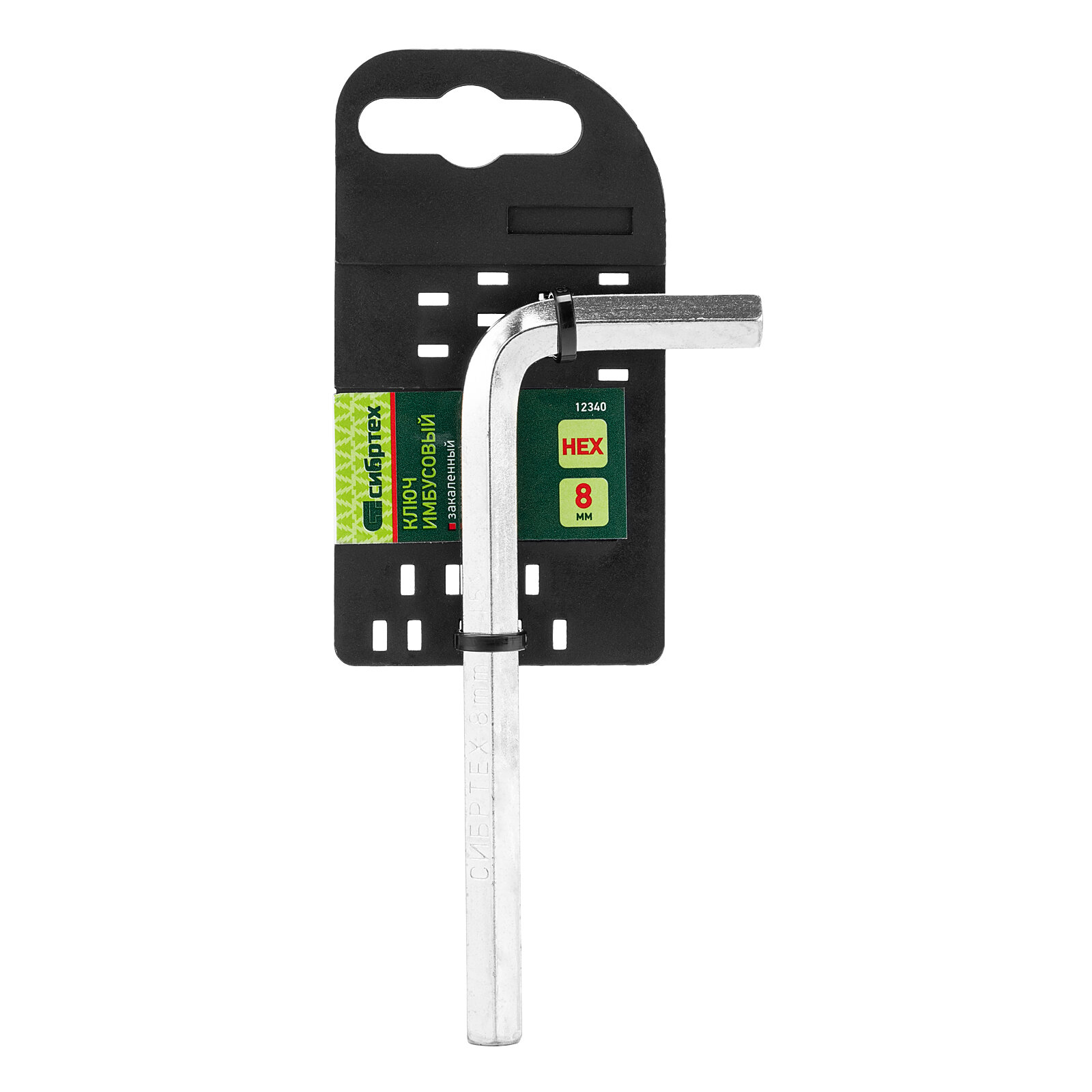 Ключ имбусовый никелированный Сибртех размером 8 мм, из закаленной стали 45Х, используется для монтажа и демонтажа резьбового крепежа с шестигранным шлицем HEX. Пригодится для сборки мебели, ремонта велосипедов, регулировки пластиковых окон и балконных дверей.