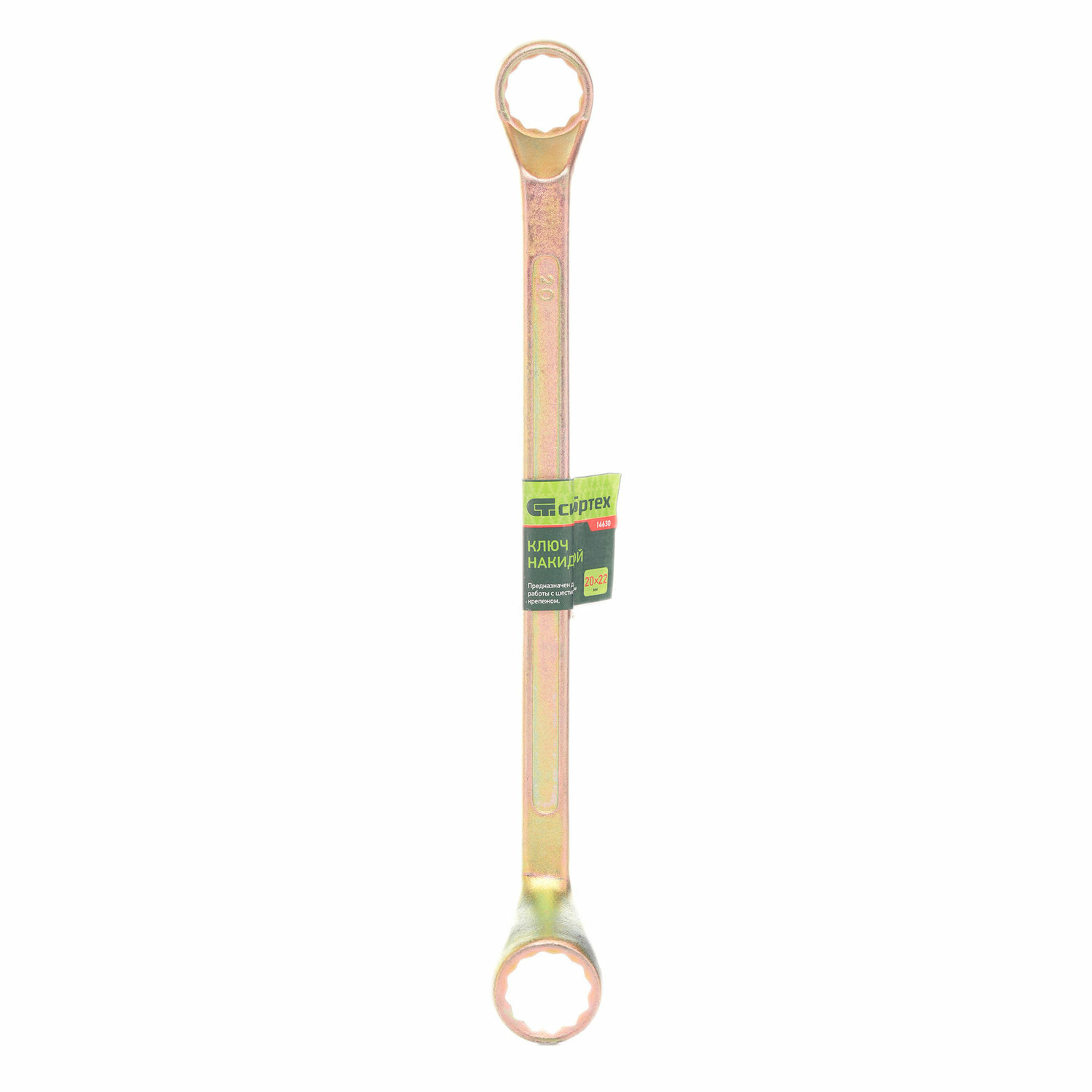 | Прочие особенности и свойства | Ключ гаечный коленчатый имеет два кольцевых зева разных размеров., Профиль кольцевого зева имеет 12 граней, что увеличивает площадь соприкосновения рабочих поверхностей и снижает риск деформации граней крепежа при монтаже. |
