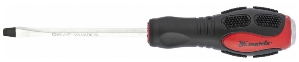 Ударная отвертка Matrix , SL6 x 150 мм, с двухкомпонентной рукояткой, из стали CrV, применяется для монтажа крепежных элементов, а также демонтажа заржавевших или перетянутых резьбовых соединений типа Slotted. Металлический затыльник на рукоятке позволяет работать совместно с молотком или киянкой. Профессиональная отвертка будет полезна на строительной площадке, в мастерской, гараже, пригодится и дома. Стержень длиной 150 мм обеспечивает возможность работы с крепежом в углублениях.