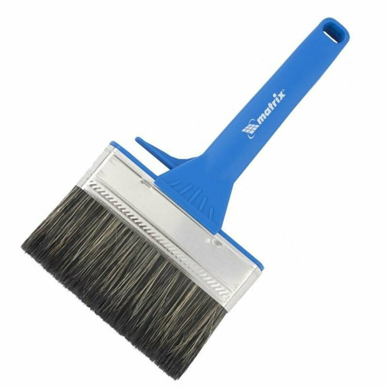 Плоская кисть MATRIX Color Line ВОДНЫЕ КРАСКИ 120х25 мм хорошо подходит для работ с ЛКМ на водной основе и позволяет получить гладкую глянцевую поверхность. Ширина составляет 120 мм. Кисть имеет смешанную щетина с расщеплением на кончиках.