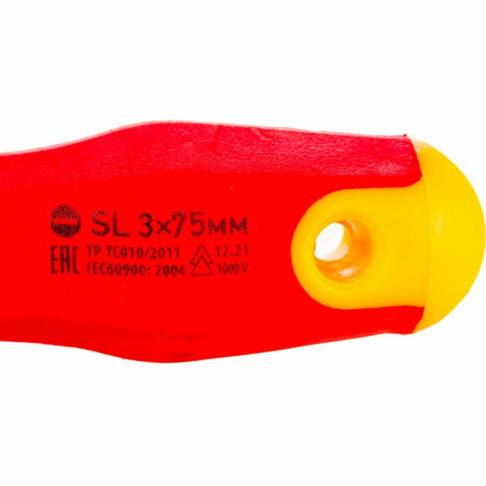 Диэлектрическая отвертка Сибртех , SL3 x 75 мм, из стали CrV, с двухкомпонентной рукояткой, используется для монтажа/демонтажа крепежных элементов типа Slotted «минус». Отвертка рассчитана на полупрофессиональное применение: замену розеток, подключение электросчетчиков и т.д. Длина стержня 75 мм удобна для работы с крепежом на поверхности и в углублениях. Внимание — техника безопасности запрещает выполнять работы под напряжением!