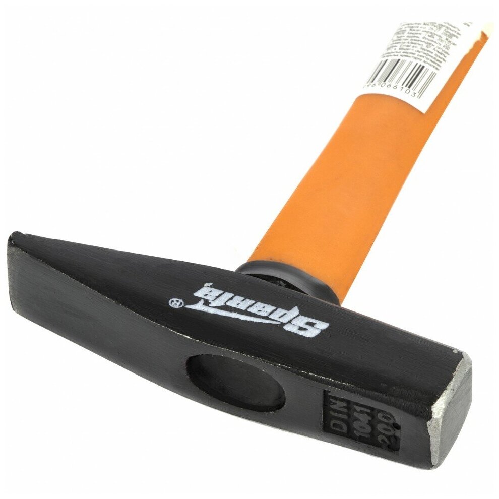 Слесарный молоток Sparta с бойком весом 200 г и фибергласовой обрезиненной рукояткой - ударный инструмент, который используется для правки металла, сборки различных конструкций, а также для забивания крепежей. Молоток подходит для профессиональных строительных и ремонтных работ, а также для решения бытовых задач.