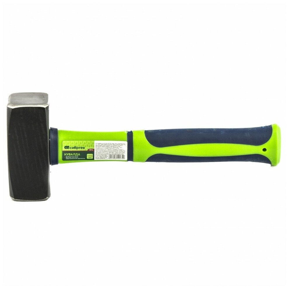 Кувалда СИБРТЕХ 1000 г имеет двухкомпонентную фибергласовую рукоятку, которая амортизирует отдачу при ударе, а резиновое покрытие препятствует скольжению в руке, головка из стали - кованая, покрыта черным лаком.