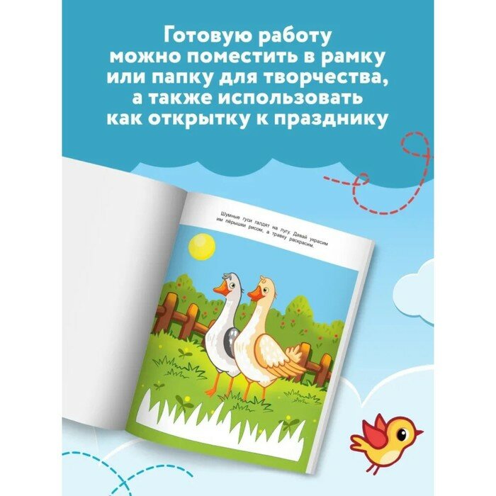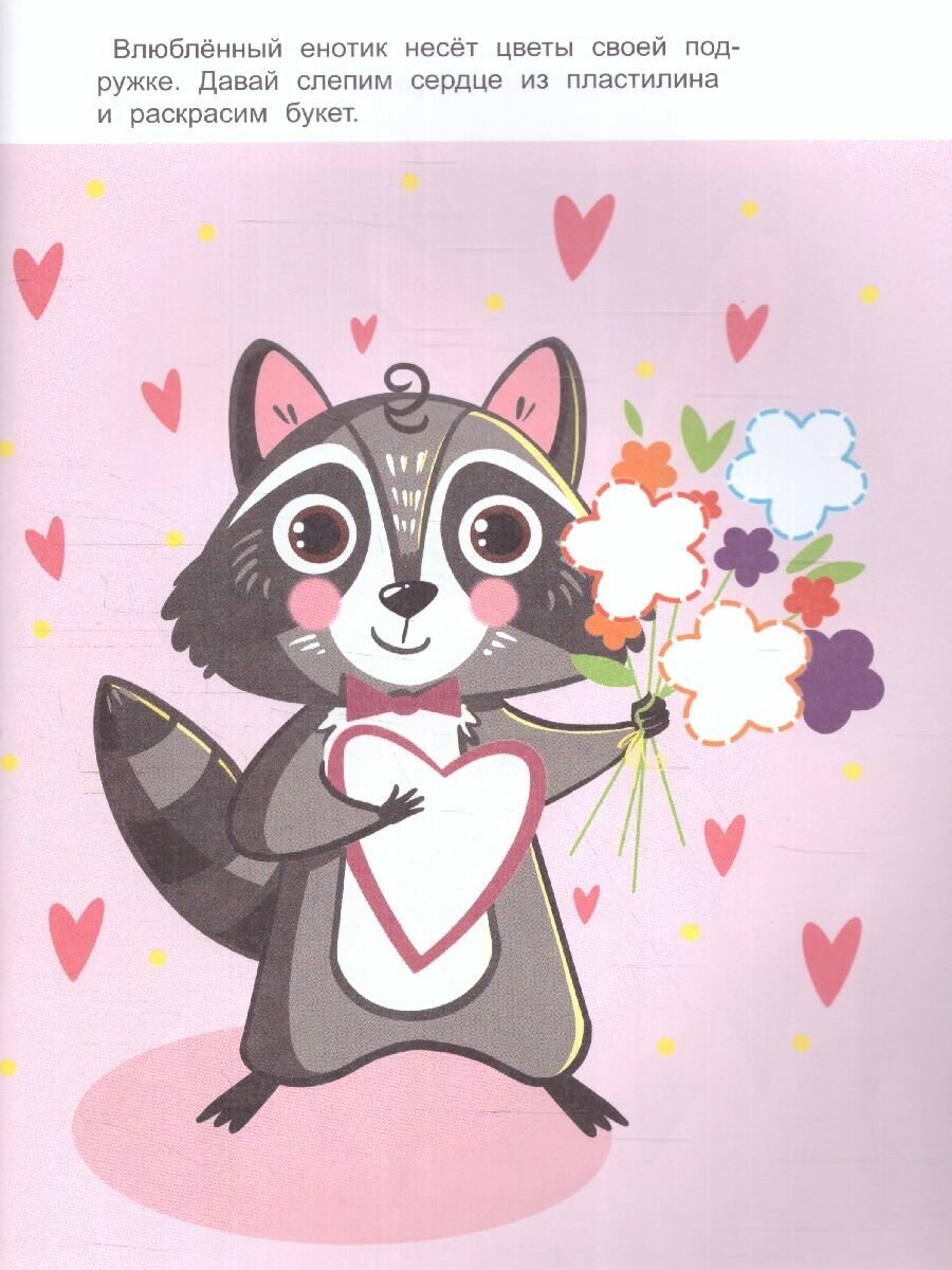 На страницах для творчества можно использовать разные техники; лепку, рисование, аппликацию и другие. Затем аккуратно отрезать лист и поместить готовую работу в рамку или папку для творчества, а также использовать как открытку к празднику.