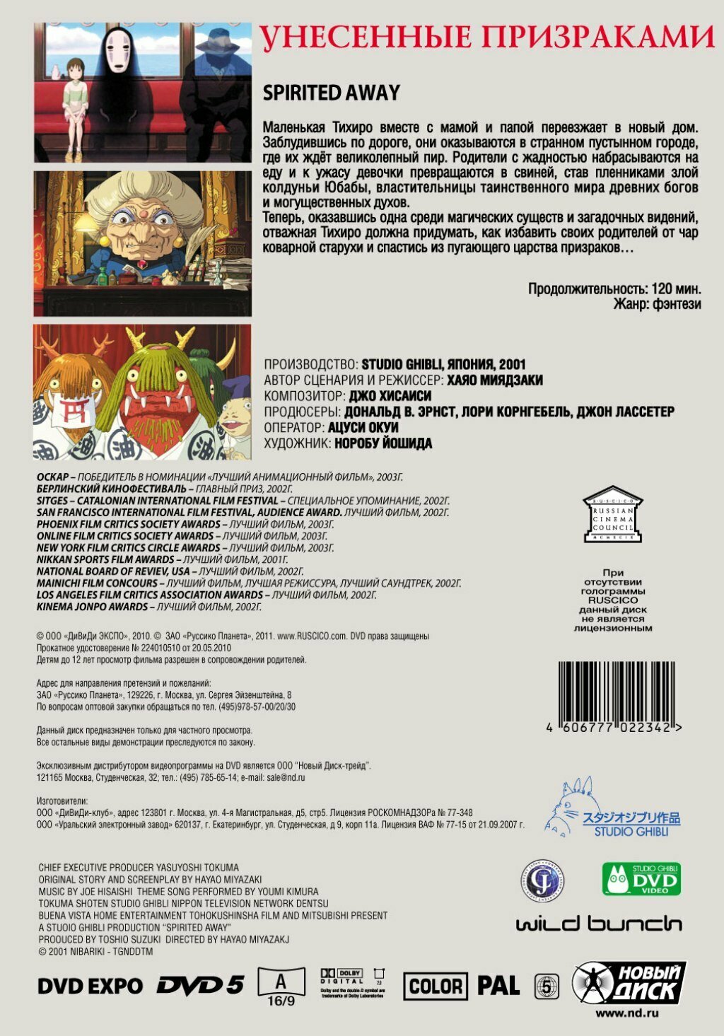 Сервис сравнения цен СкидкаГИД предлагает сравнить цены на товар «Унесенные призраками. Региональная версия (DVD) Новый Диск»