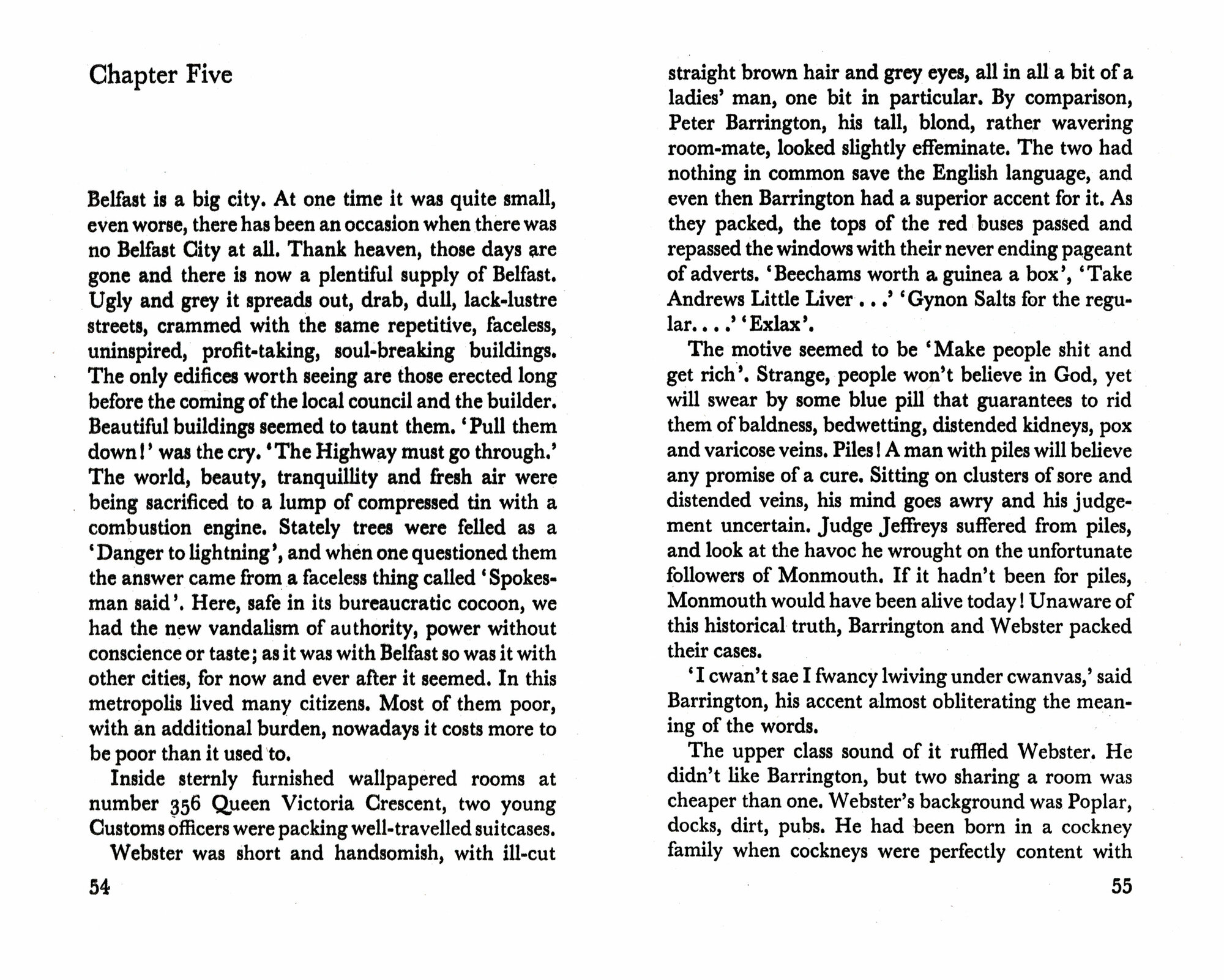 Houses are divided from outhouses, husbands separated from wives, bars are cut off from their patrons, churches sundered from graveyards. And in the middle of it all is poor Dan Milligan, our feckless protagonist, who is taunted and manipulated by everyone (including the sadistic author) to try and make some sense of this mess . . .