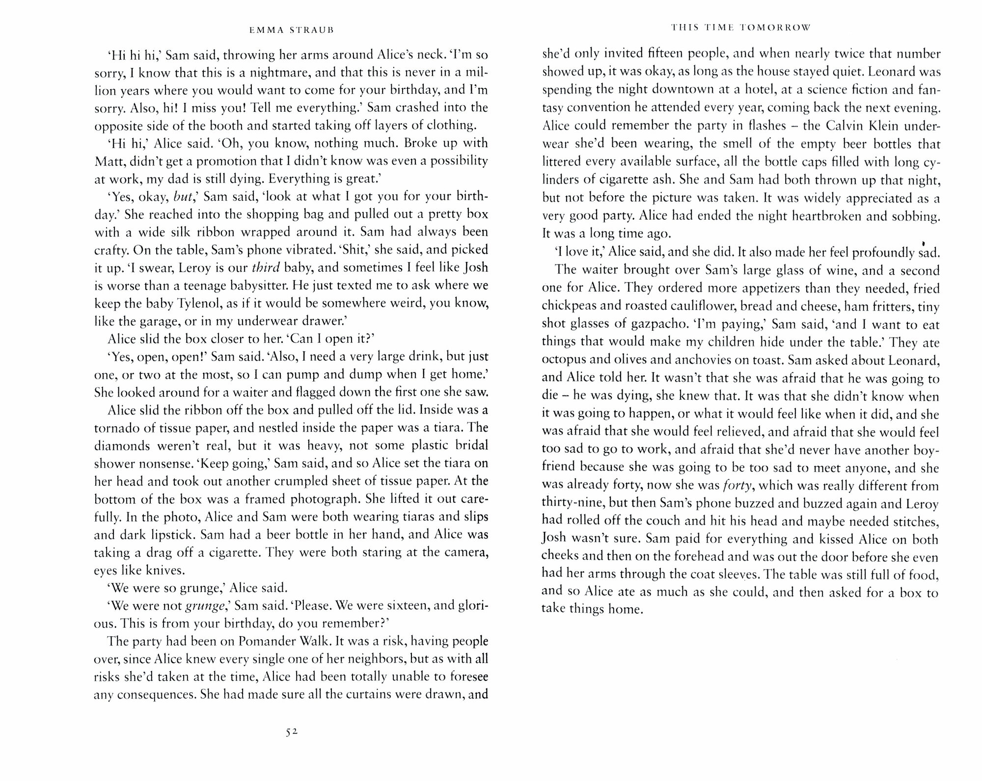 When she falls asleep outside their old apartment on the night before her birthday, she's surprised to be greeted the next morning by a much younger Leonard, with a sixteenth birthday card for a teenage Alice who, far from clinging to her youth, is hurtling towards adulthood . . .
