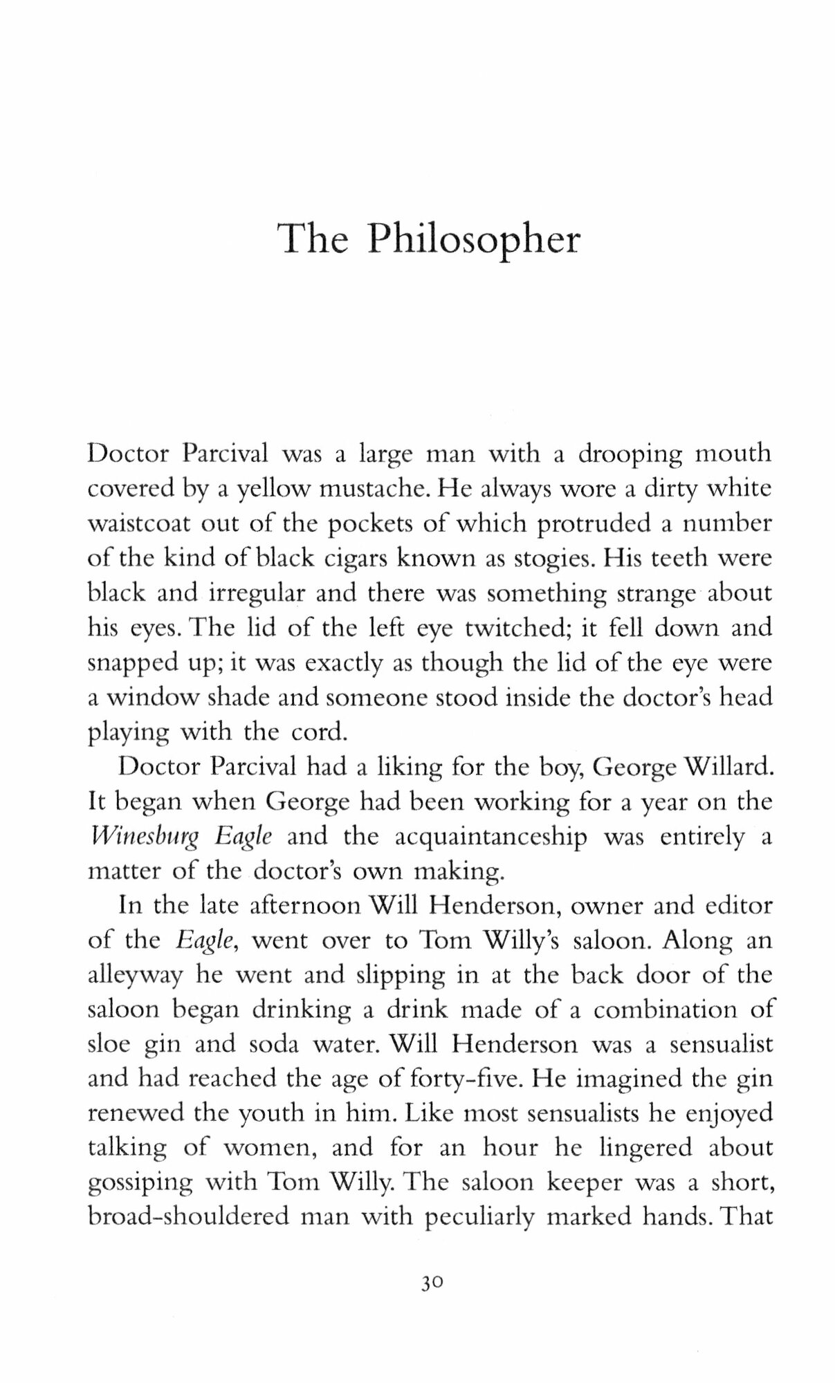 This timeless cycle of short stories lays bare the life of a small town in the American Midwest. The central character is George Willard, a young reporter on the WINESBURG EAGLE to whom, one by one, the town's inhabitants confide their hopes, their dreams, and their fears. The town of friendly but solitary people comes to life as Anderson's special talent exposes the emotional undercurrants that bind its people together.
