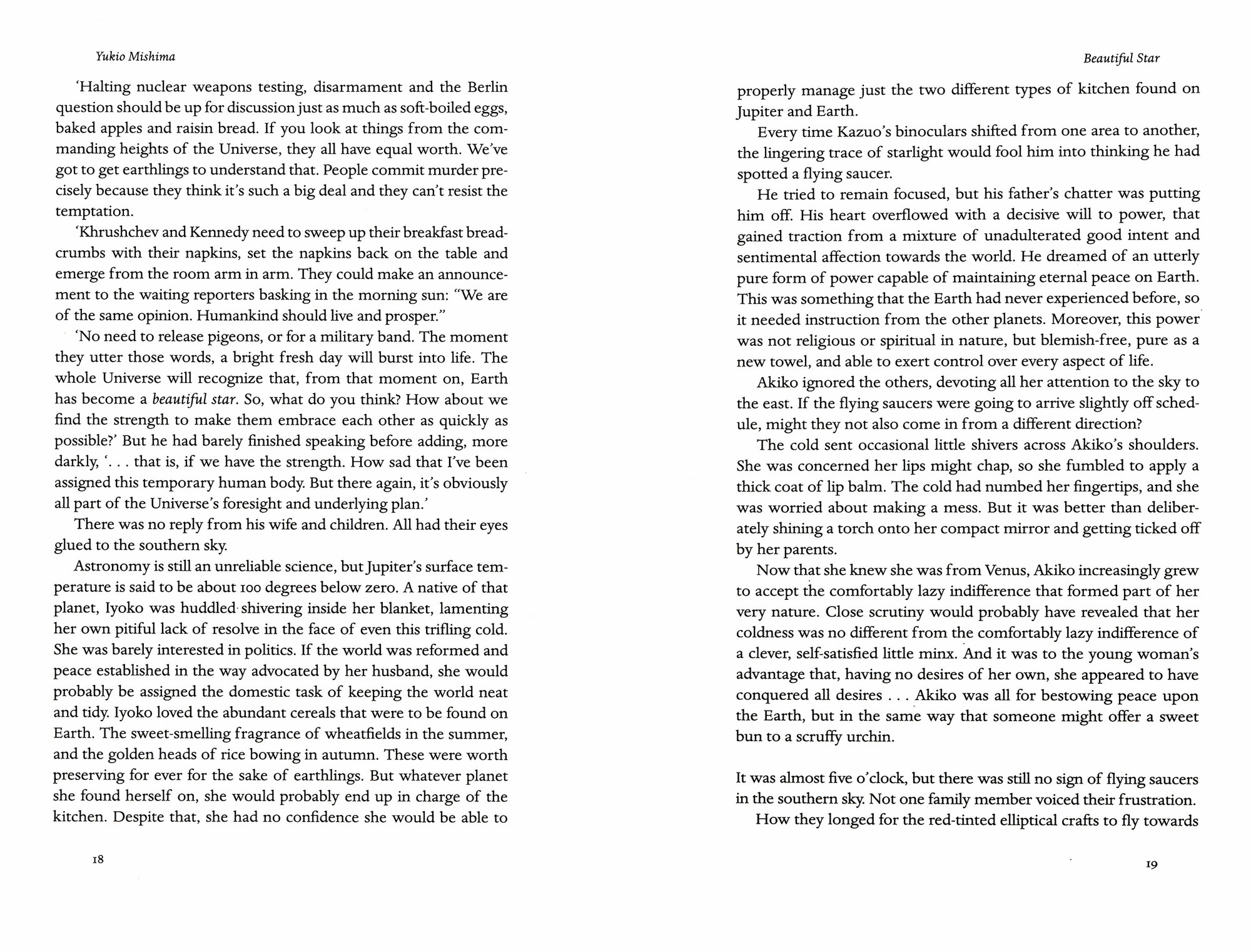 Beautiful Star is a 1962 tale of family, love, nuclear war and UFOs, and was considered by Mishima to be one of his very best books.