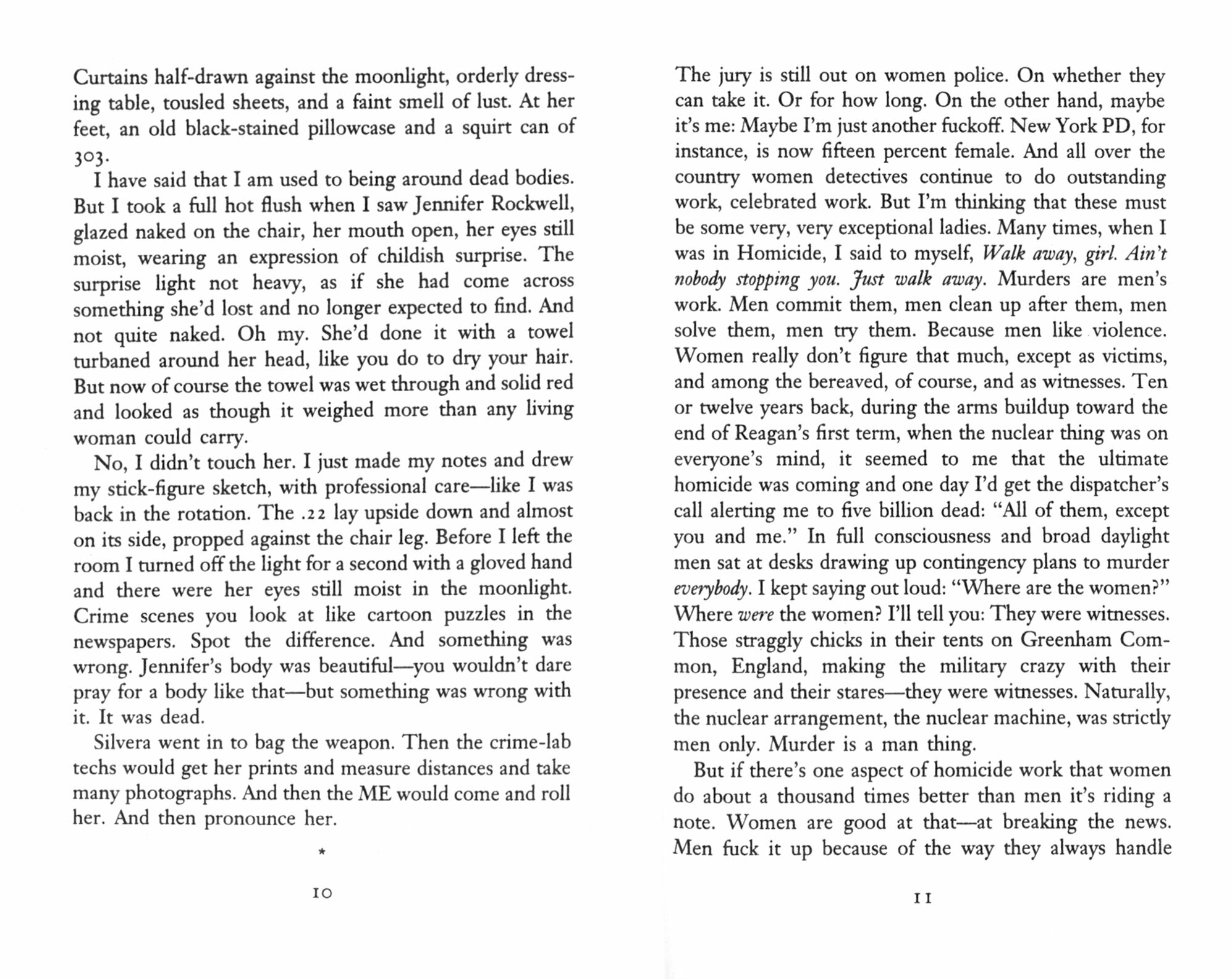 'I worked one hundred murders,' says Detective Mike Hoolihan, an American policewoman. 'In my time I have come in on the aftermath of maybe a thousand suspicious deaths, most of which turned out to be suicides, accidentals or plain unattendeds. So I've seen them all: jumpers, stumpers, dumpers, dunkers, bleeders, floaters, poppers, bursters. But of all the bodies I have ever seen none has stayed with me, in my gut, like the body of Jennifer Rockwell. I say all this because I am part of the story I am going to tell, and I feel the need to give you some idea of where I'm coming from.'
