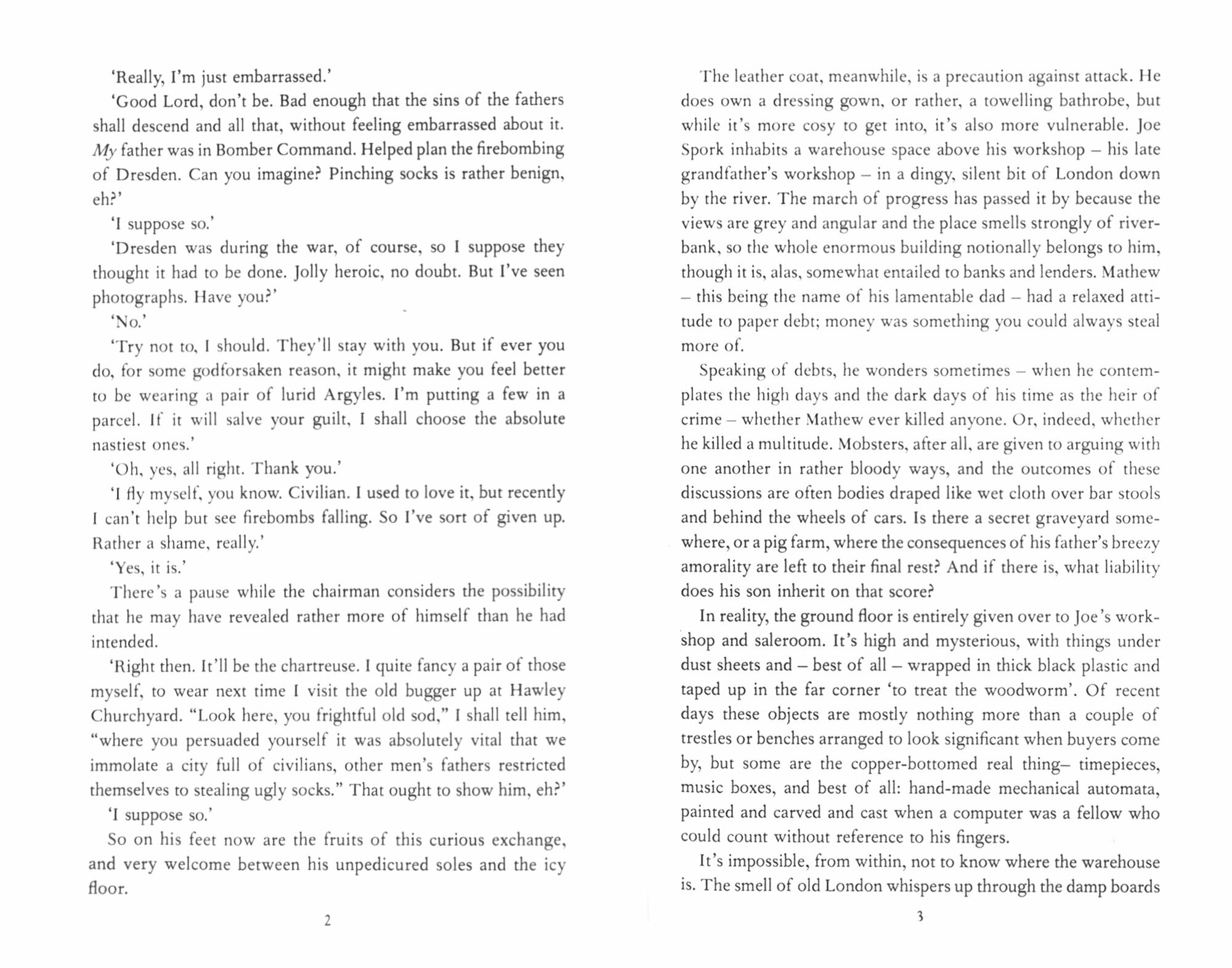 Joe Spork, son of the infamous criminal Mathew ‘Tommy Gun’ Spork just wants a quiet life, repairing clockwork in a wet, unknown bit of London.