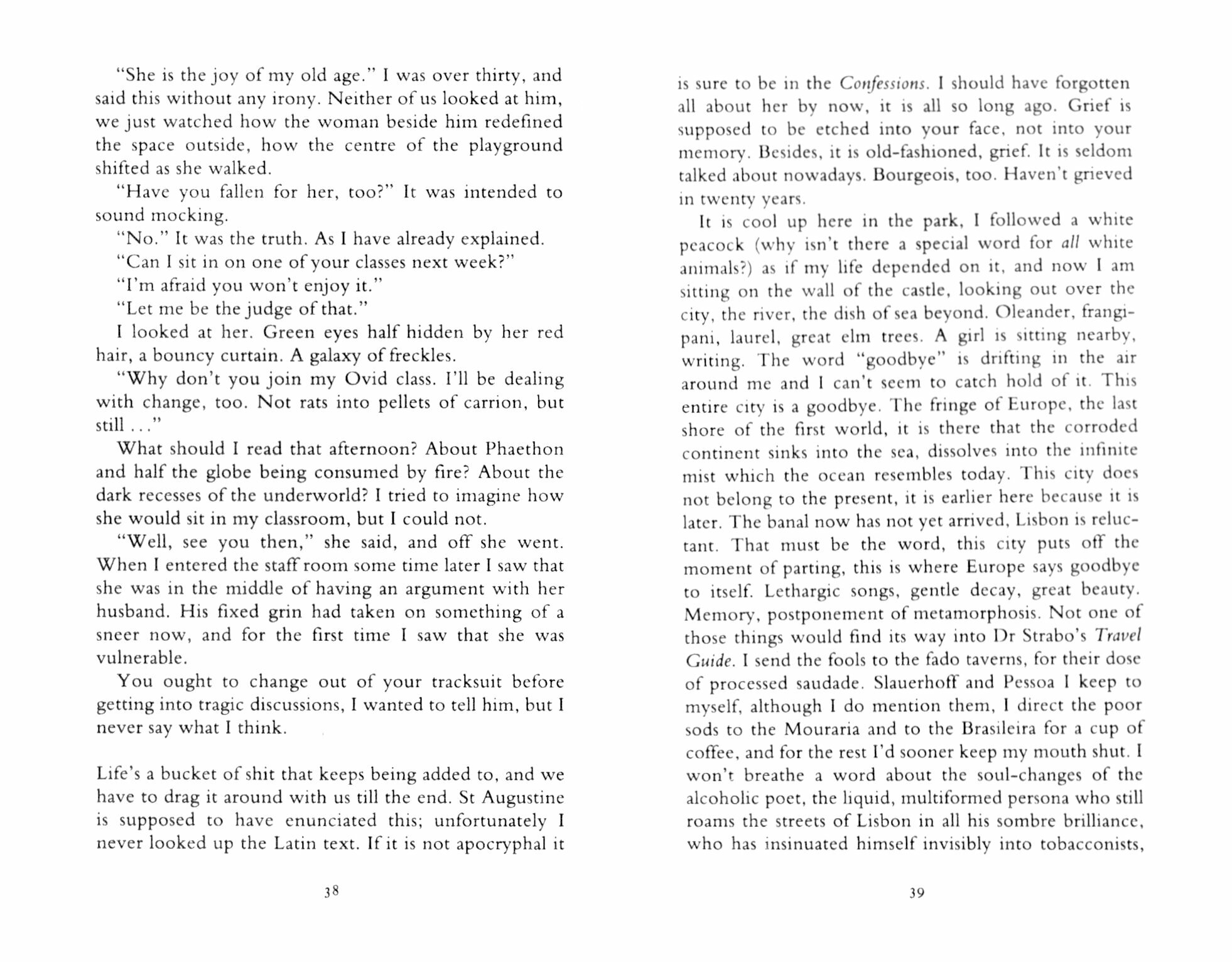 One morning Herman Mussert wakes up in a hotel room in Lisbon, where twenty years previously he slept with another man’s wife. Yet he is quite certain that the night before he went to sleep as normal in his house in Amsterdam. And so Herman begins a physical journey and a metaphysical adventure, which will re-route him via past loves, through the pangs and pleasures of memory, and to the very heart of that crucial question: ‘who am I?’.