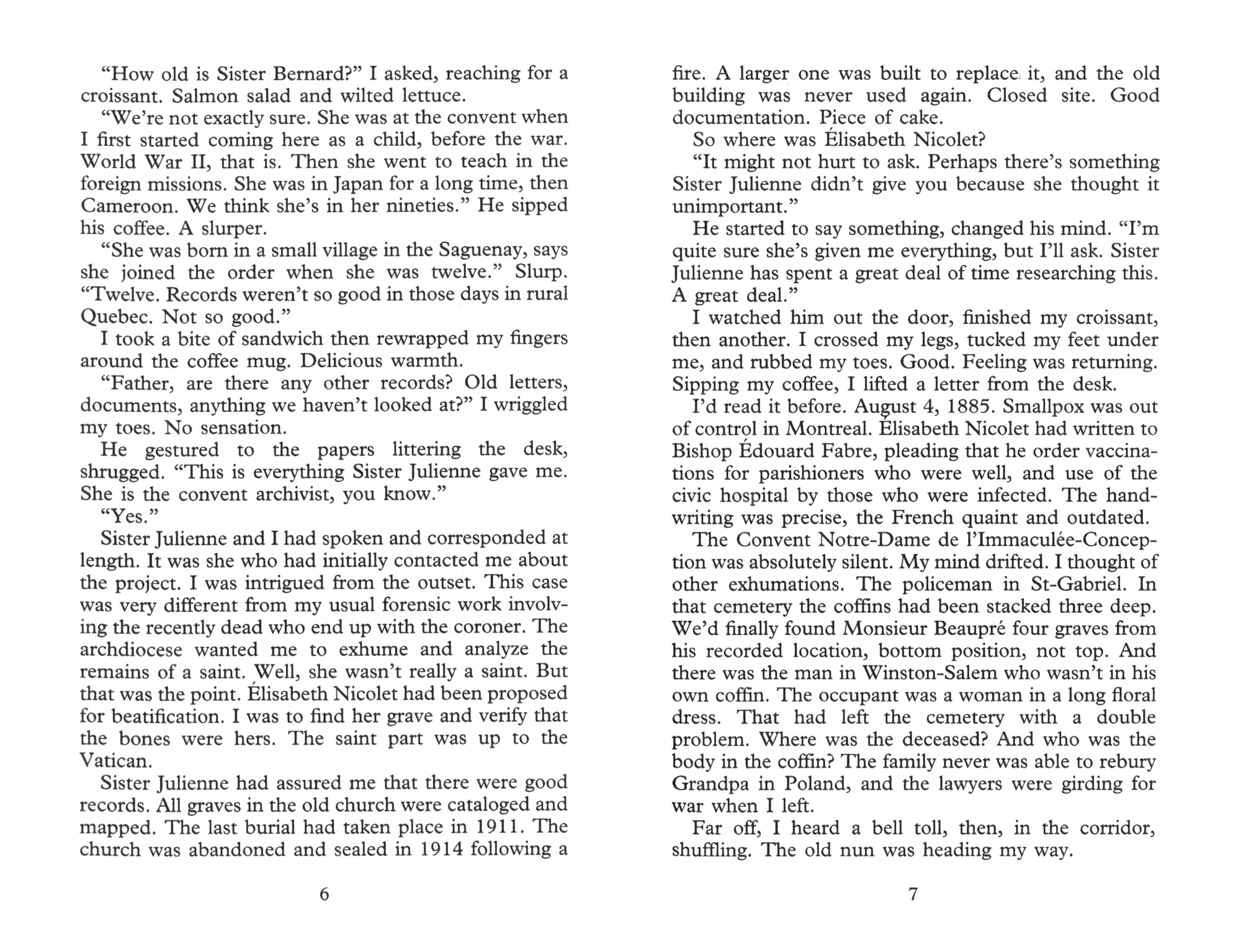 On a bitterly cold March night in Montreal, forensic anthropologist Dr Temperance Brennan is exhuming the remains of a nun in the grounds of an old church.