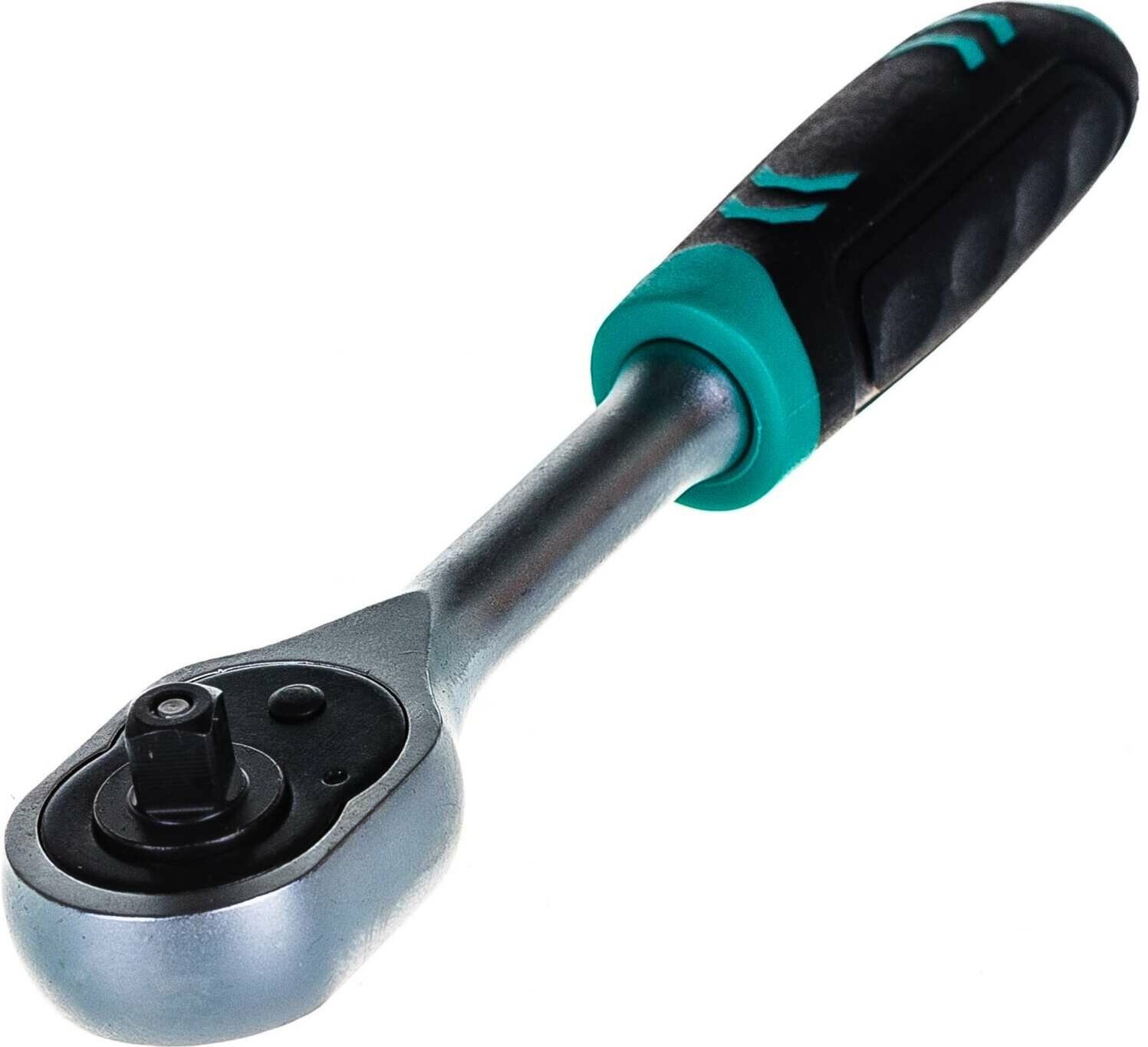 | Прочие особенности и свойства | Ключ изготовлен из хромванадиевой стали. Имеет антикоррозионное покрытие из хрома. Храповый механизм с переключателем обеспечивает плавный ход и возможность быстрой смены направления вращения ключа. Присоединительный квадрат с шариковым фиксатором надежно удерживает съемные торцевые головки различных размеров, удлинители, адаптеры. Ключ снабжен механизмом быстрого сброса насадок. Ключ имеет эргономичную двухкомпонентную ручку. Предназначен для быстрого монтажа резьбовых соединений.72 зуба с быстрым сбросом crv |