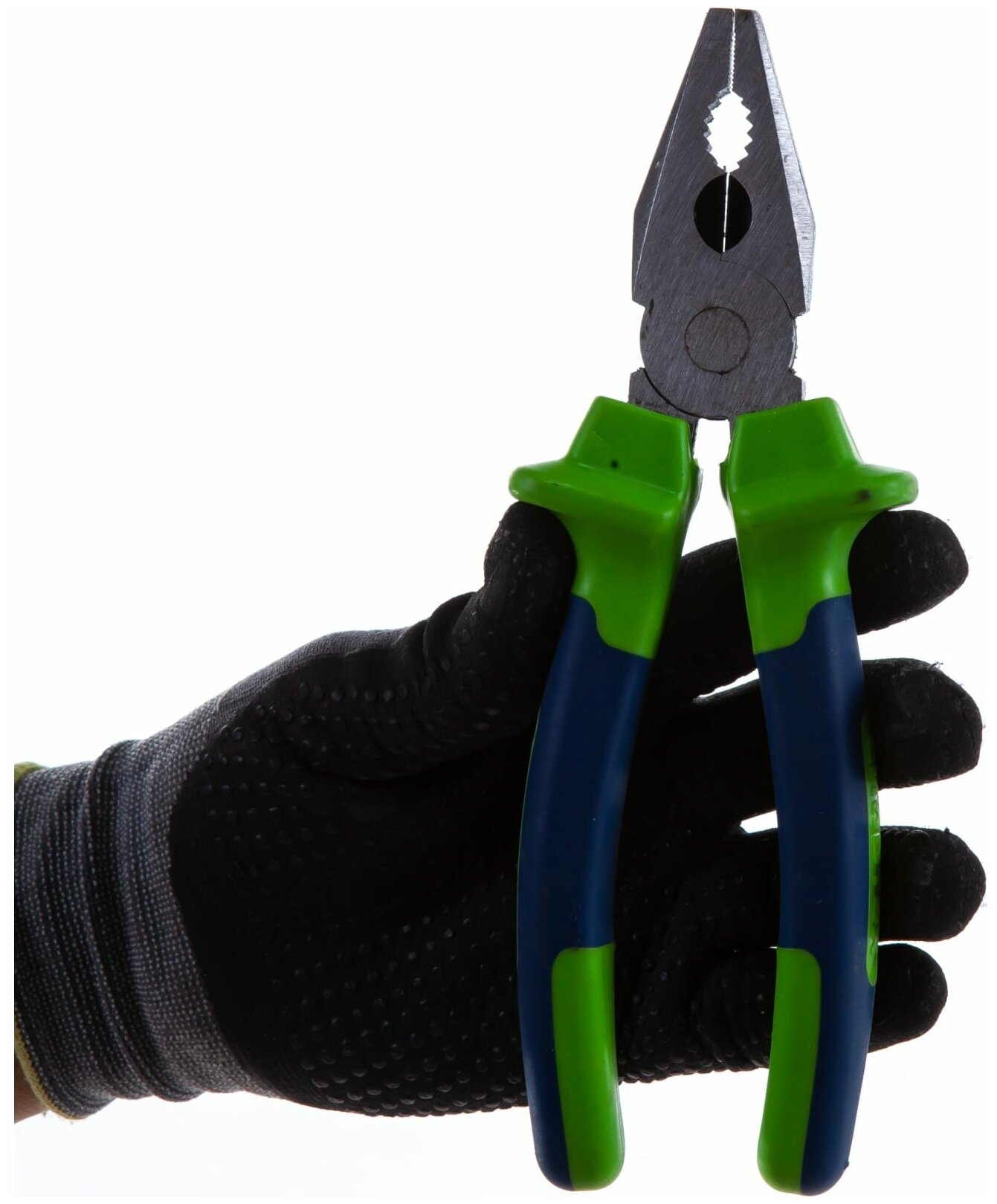 Плоскогубцы комбинированные широко применяются в различных слесарных и монтажных работах, используются для захвата и удержания предметов различной формы, а также перекусывания проводов и проволоки. Рабочие части инструмента закалены индукционным методом., Двухкомпонентные рукоятки с широкими упорами изготовлены из ПВХ. Металлические части отшлифованы. Изготовлены из стали 45.