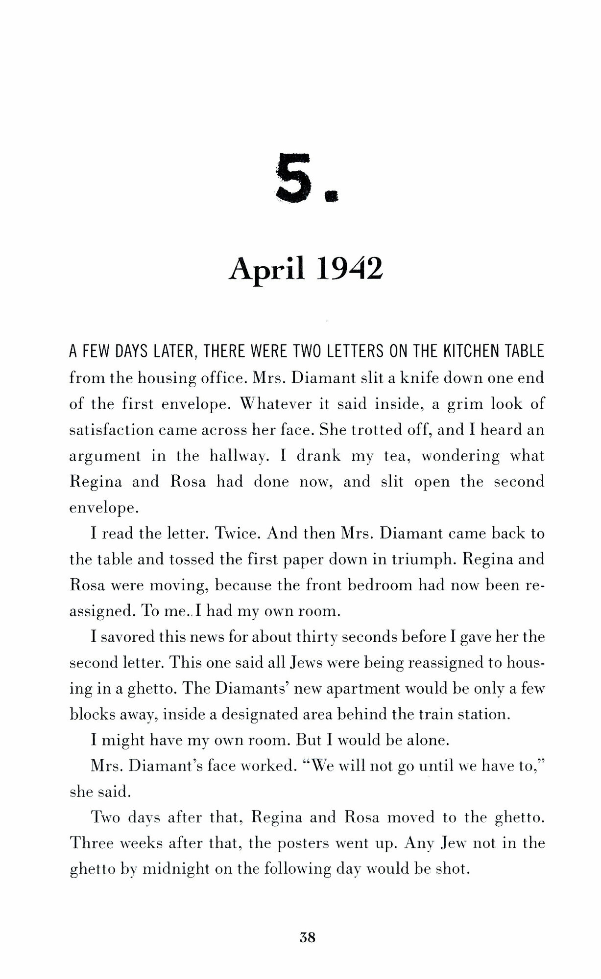 It is 1943, and sixteen-year-old Stefania Podgorska has been working for the Diamant family in their grocery store in Przemsyl, Poland, for four years. She has even made a promise to one of their sons, Izio - an engagement they must keep secret since she is Catholic and the Diamants are Jewish.
