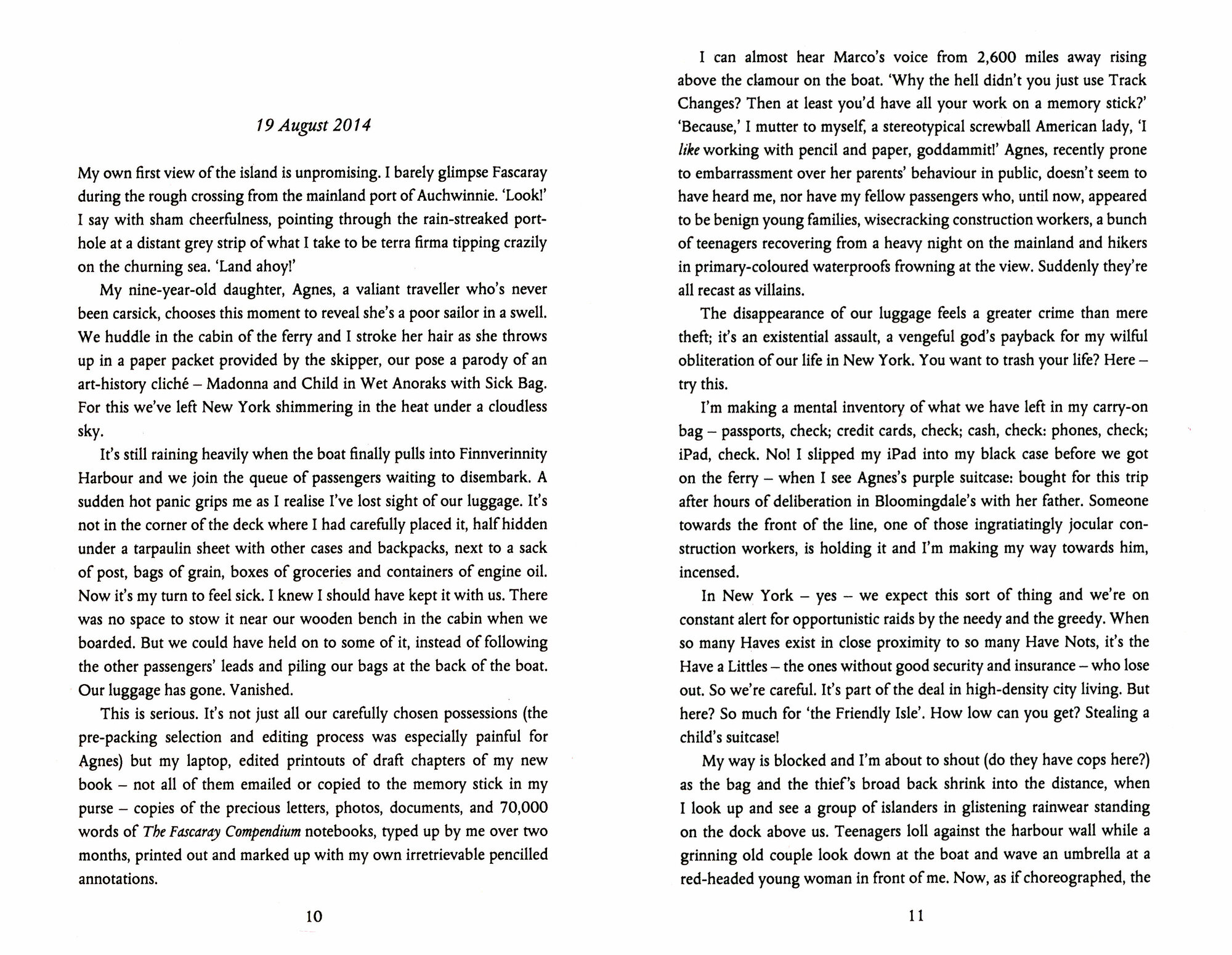 After her relationship breaks down, Mhairi McPhail dismantles her life in New York and moves with her nine-year-old daughter, Agnes, to the remote Scottish island of Fascaray to write the biography of Grigor McWatt, the late Bard of Fascaray.