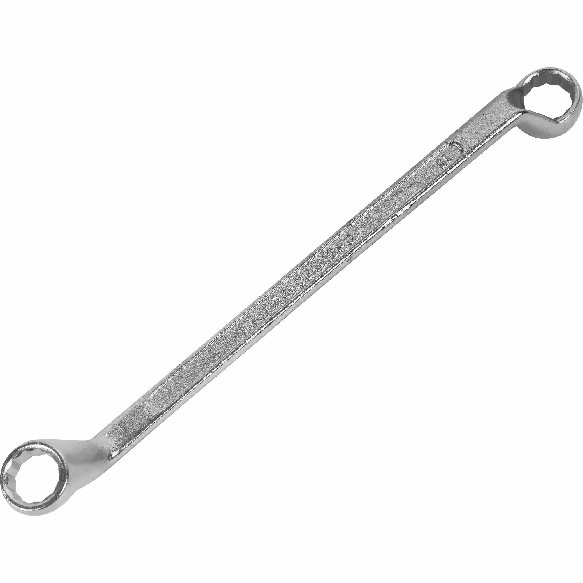 | Прочие особенности и свойства | Ключ гаечный коленчатый Предназначен для монтажа и демонтажа резьбовых соединений., Ключ гаечный коленчатый изготовлен из углеродистой стали., Твердость материала рабочей части ключа 42 HRC, требования ГОСТ – 41–46 HRC., Надежное антикоррозионное покрытие из хрома., Ключ имеет два кольцевых зева разных размеров., Профиль кольцевого зева имеет 12 граней, что увеличивает площадь соприкосновения рабочих поверхностей и снижает риск деформации граней крепежа при монтаже., Накидные рабочие части ключа смещены относительно его рукоятки, что позволяет работать в труднодоступных местах. |