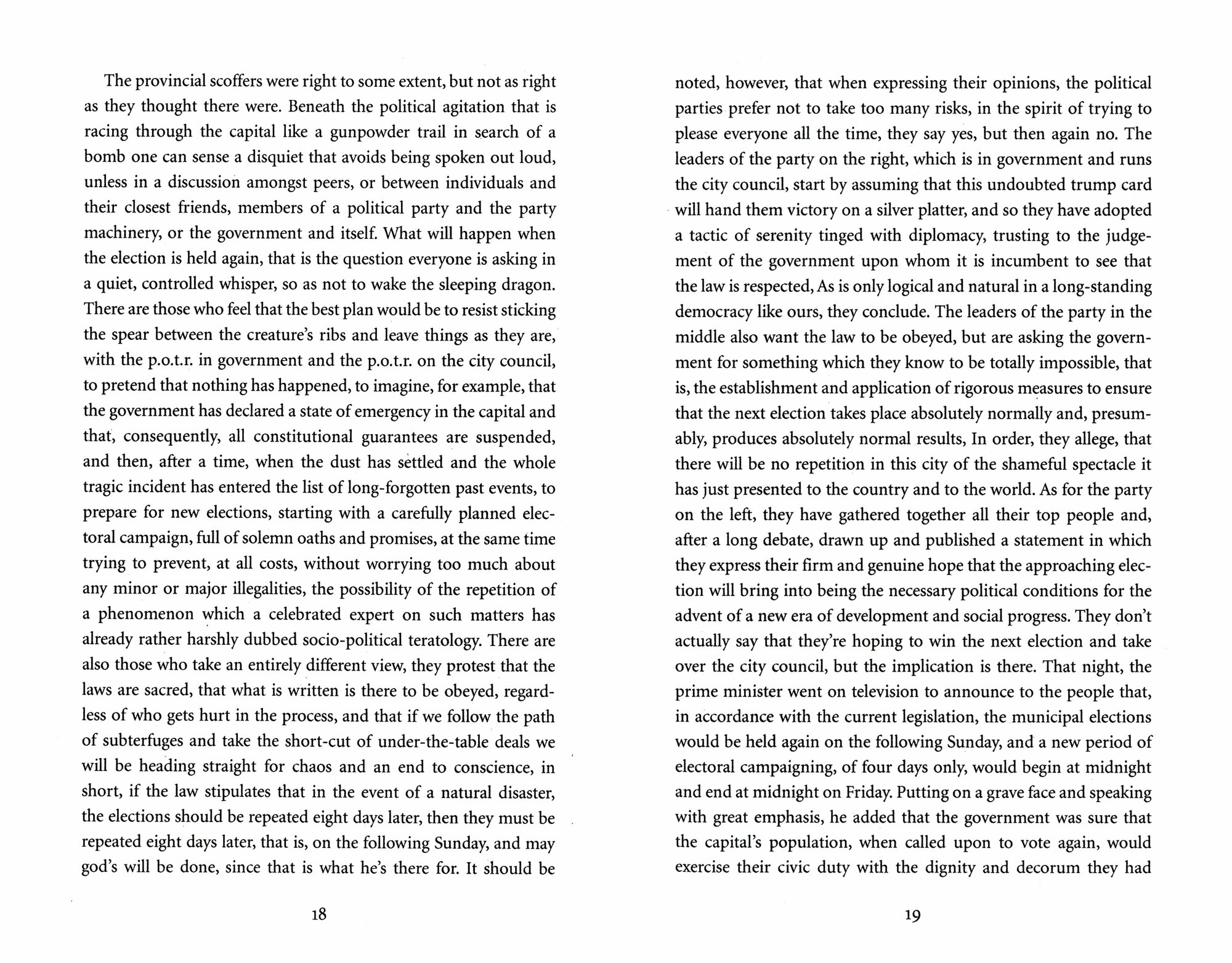Despite the heavy rain, the officer at Polling Station 14 finds it odd that by midday on National Election day, only a handful of voters have turned out. Puzzlement swiftly escalates to shock when the final count reveals seventy per cent of the votes are blank. National law decrees the election should be repeated but the result is even worse. The authorities, seized with panic, decamp from the capital and declare a state of emergency. When apathy and disillusionment renders an entire democratic system useless what happens next?