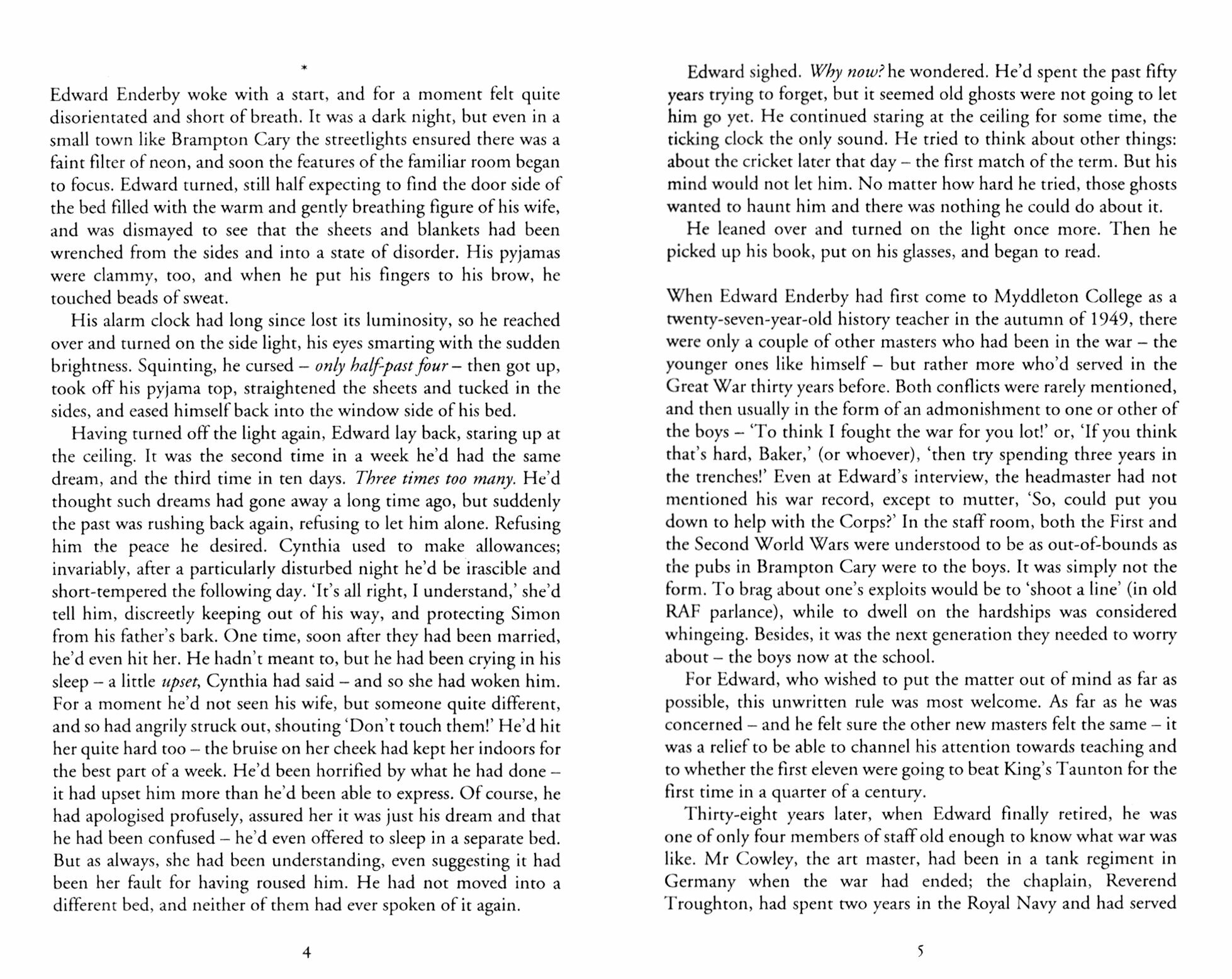 Edward Enderby has never spoken about being an RAF fighter pilot. But fifty years after the greatest conflict the world has ever seen, he must finally confront the memories he has tried so hard to forget.