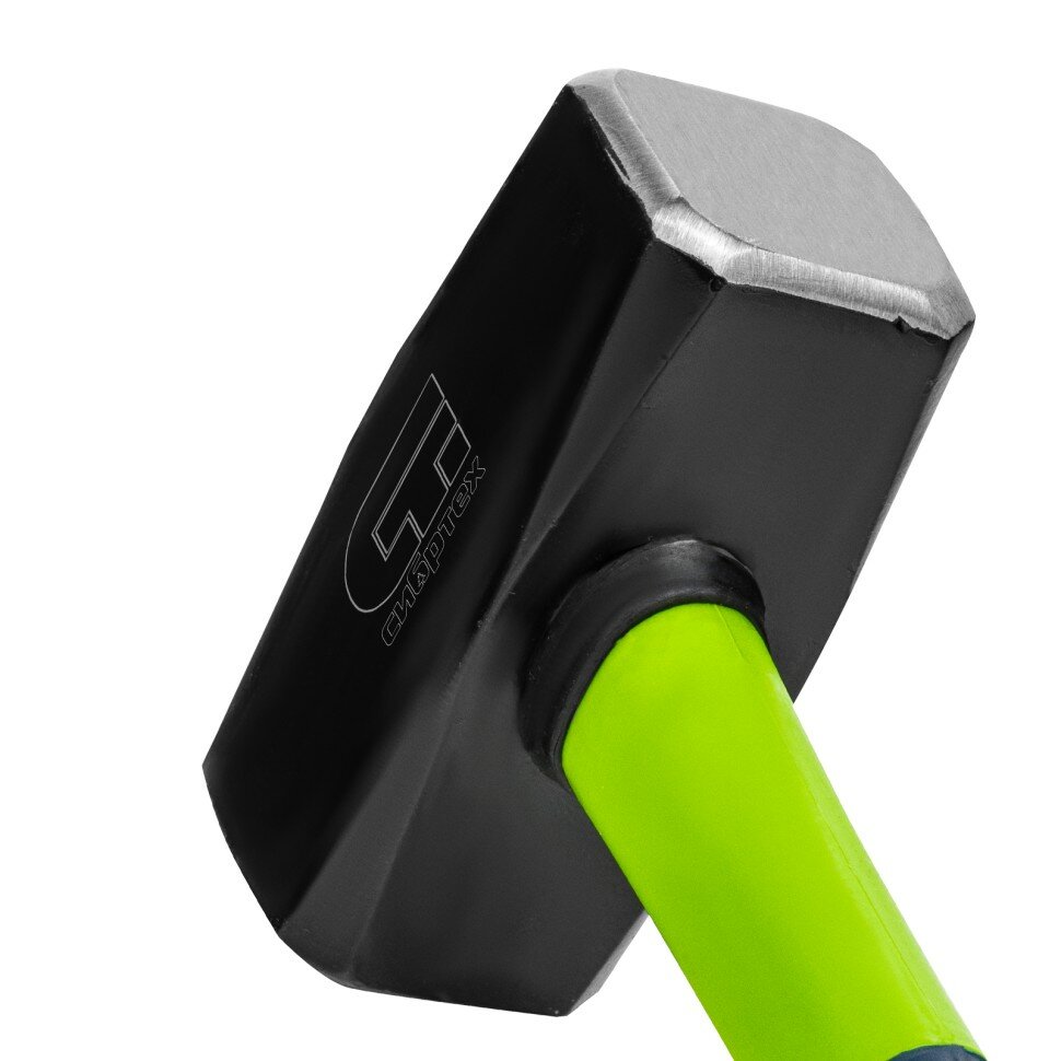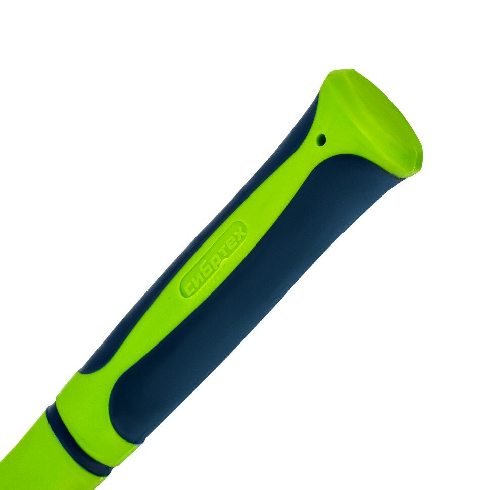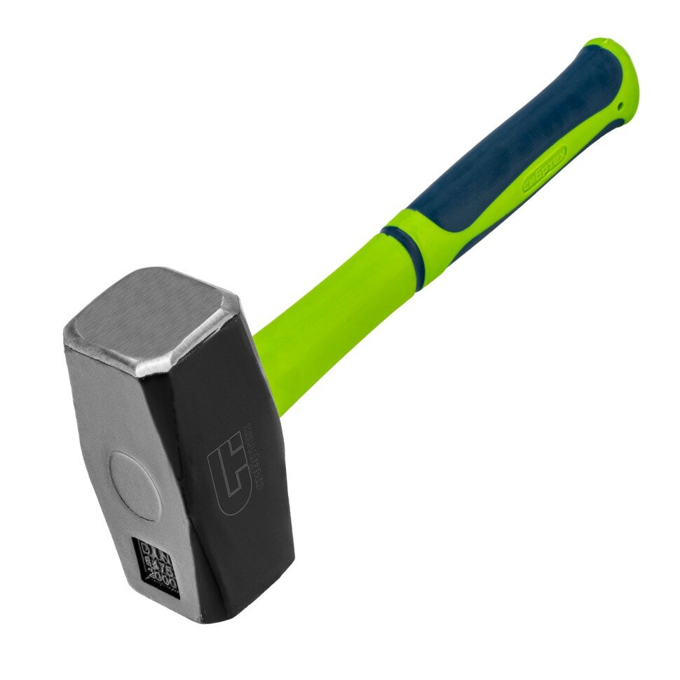 Кувалда СИБРТЕХ 2000 г имеет двухкомпонентную фибергласовую рукоятку, которая амортизирует отдачу при ударе, а резиновое покрытие препятствует скольжению в руке, головка из стали - кованая, покрыта черным лаком.