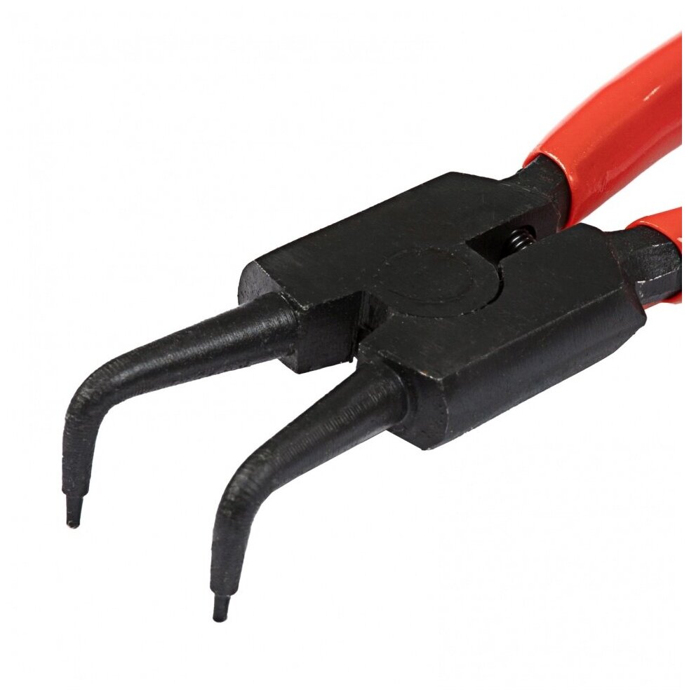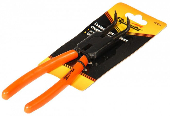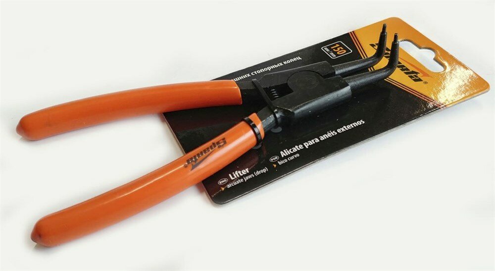 Съемник для внешних стопорных колец SPARTA с изогнутыми губками предназначен для монтажа/демонтажа внешних стопорных колец. Наконечники съемника имеют специальную форму, которая предотвращает срыв стопорного кольца.