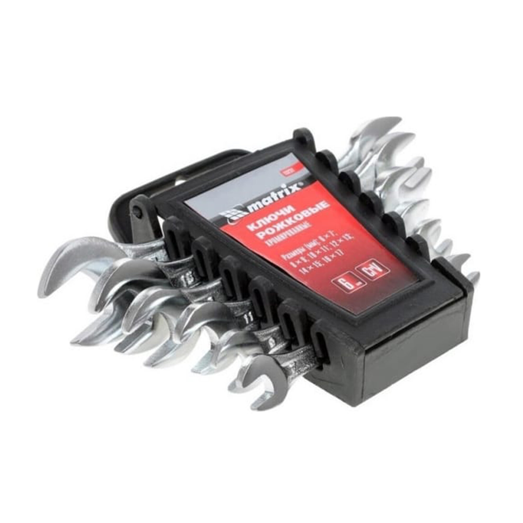 Matrix - это набор инструмента, который априори является незаменимым компаньоном каждого ответственного мастера, стремящегося не только к качественному результату, но и заботящегося о собственном удобстве в ходе выполнения разного типа ремонтных работ. Ключи изготовлены из хромванадиевой стали. Твердость материала рабочей части ключа 45 HRc. Имеют полированное хромоникелевое покрытие. Ключи гаечные двусторонние с открытым зевом предназначены для монтажа и демонтажа резьбовых соединений.