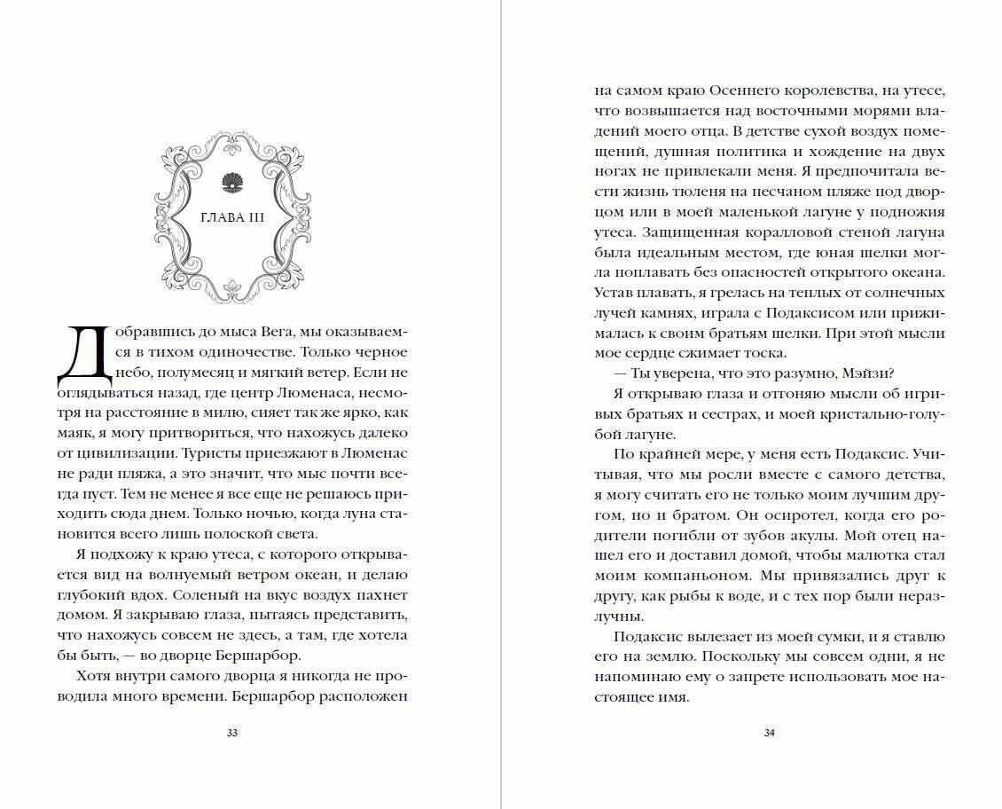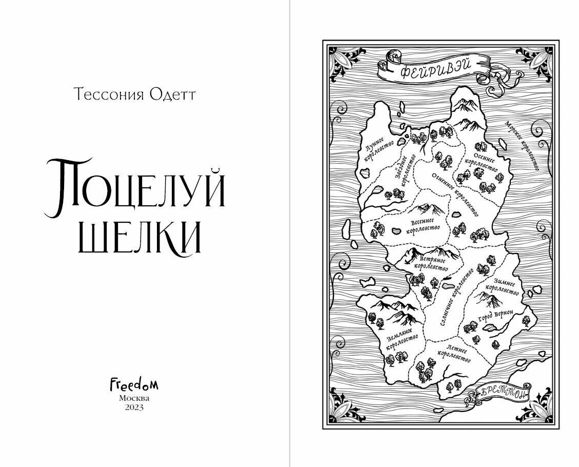 Красивый беглец ищет брак по расчету. Шелки, чей поцелуй смертелен, может решить его судьбу... Чтобы избежать гнева злобной морской королевы, шелки Мэйзи прячется на суше, зарабатывая воровством. Однажды девушка спасает тонущего человека и вытаскивает его на берег, тем самым нарушая закон фейри. В качестве наказания ей необходимо выследить спасенного юношу… и подарить ему свой смертоносный поцелуй. Сын печально известного убийцы фейри, Дориан, попав на запретный остров, сделает все, чтобы остаться здесь, даже если для этого потребуется жениться. А Мэйзи предстоит притвориться дебютанткой, чтобы завоевать его внимание. Но если любовь однажды придет на смену притворству, неужели рокового поцелуя будет не избежать? Ретеллинг сказки «Русалочка». В отличие от классической сказки, действие романа разворачивается в мире морских обитателей, фейри и магии. Мэйзи хранит секрет, который может стать ее смертью. Что она выберет: свободу или море, любовь или погибель? Она должна найти ответы до того, как пророчество исполнится и никого уже будет не спасти. 4 книги. 4 ретеллинга сказок: «Красавица и Чудовище», «Золушка», «Русалочка» и «Белоснежка». Разные персонажи, локации, магия, приключения, одна вселенная Фейривэй. Романтическое фэнтези, в котором сплетаются королевские интриги, зловещие сделки, страсть и коварные проклятия. Ретеллинг знаменитой сказки + мир фейри, пиратов и подводного царства. На форзацах будут иллюстрации персонажей и цитаты. А также внутри макета вас ожидает приятный сюрприз в виде карты вселенной Фейривэй. Серия набрала более 4300 оценок на сайте Amazon На просторах интернета можно найти атмосферные арты персонажей, которыми делится сама Тессония Одетт.