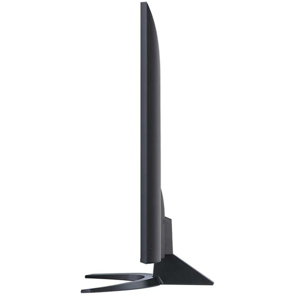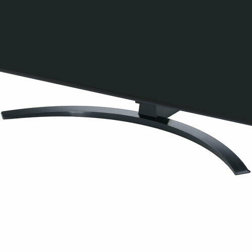Трехсторонний безрамочный дисплей придает внешнему виду телевизора тонкий вид, отлично смотрится как на тумбе, так и на стене. Серпообразная подставка, расположенная по центру, и корпус выглядят качественно и добротно. Наслаждайтесь любимыми фильмами с великолепной цветопередачей на большом экране.