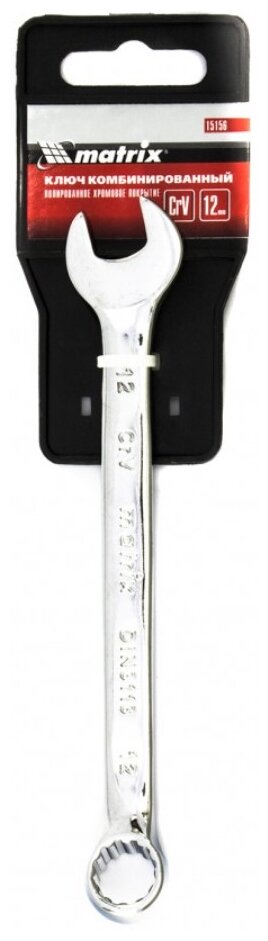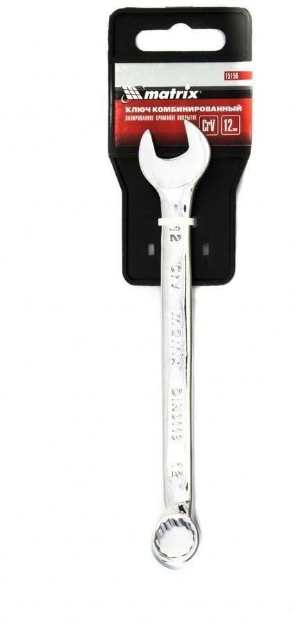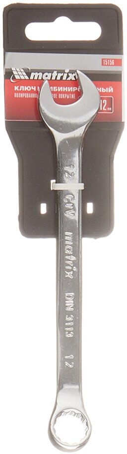 Комбинированный ключ 12 мм MATRIX прочен и надежен в работе. Он надежно защищен от коррозии. Подходит для частого использования и высоких нагрузок. Изделие соответствует ГОСТ. Ключ выполнен из прочной и качественной хромованадиевой стали и имеет зеркально отполированную хромоникелевую поверхность с антикоррозийными свойствами. Рабочие части обеих головок имеют высокую твердость 45 HRc (требования ГОСТ – 45–51 HRc).