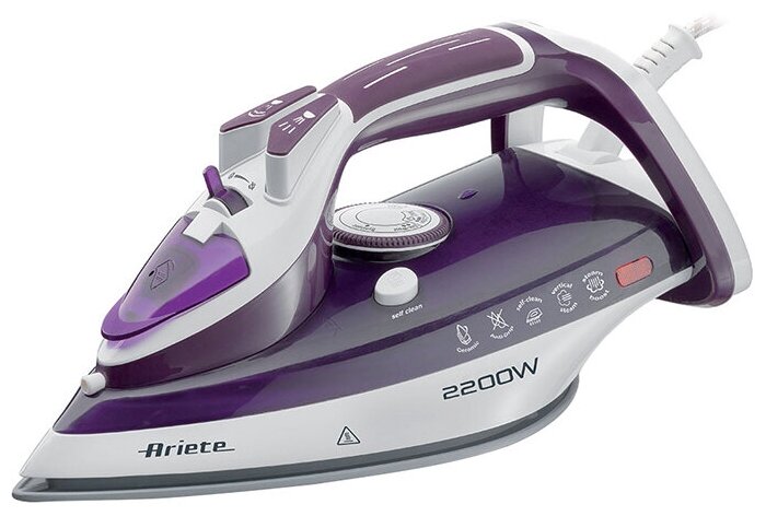 Утюг Ariete – отличный помощник для любой хозяйки. Он способен превратить рутинную глажку в простое и приятное занятие, которое занимает минимум вашего времени. Мощность 2200 Вт позволяет быстро справляться с любыми складками. Данная модель имеет прочную керамическую подошву, выполнена в простом и эргономичном дизайне, ручка обладает удобной формой, благодаря особому покрытию комфортно лежит в руке во время работы, а большая устойчивая подставка дает возможность зафиксировать утюг в вертикальном положении, пока вы будете размещать вещь на гладильной доске.