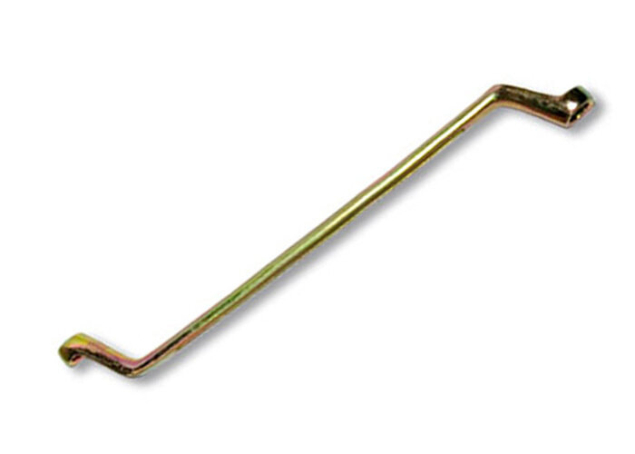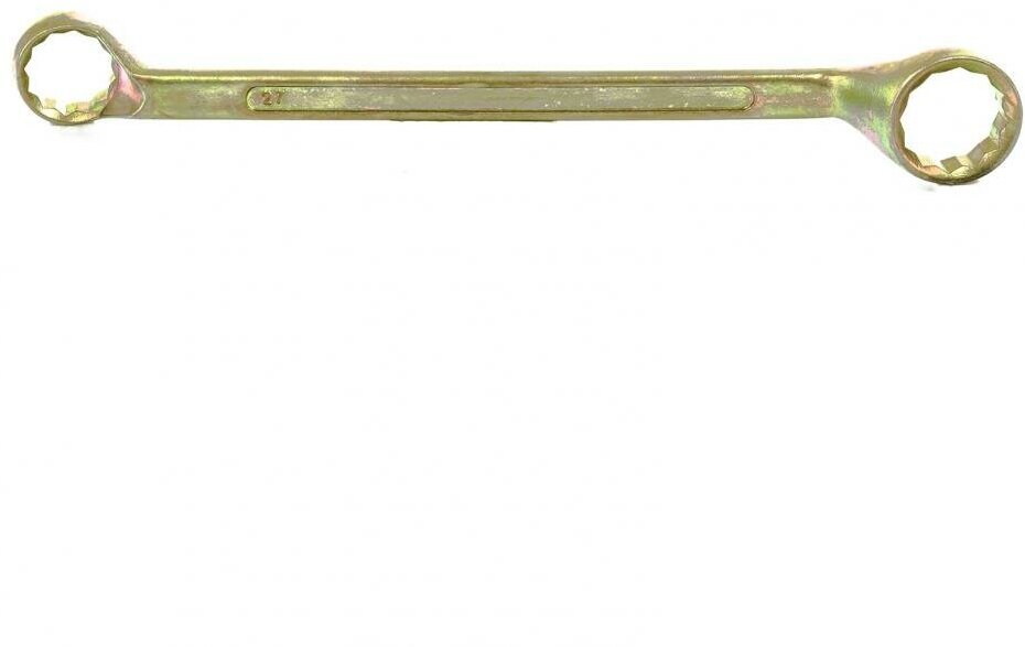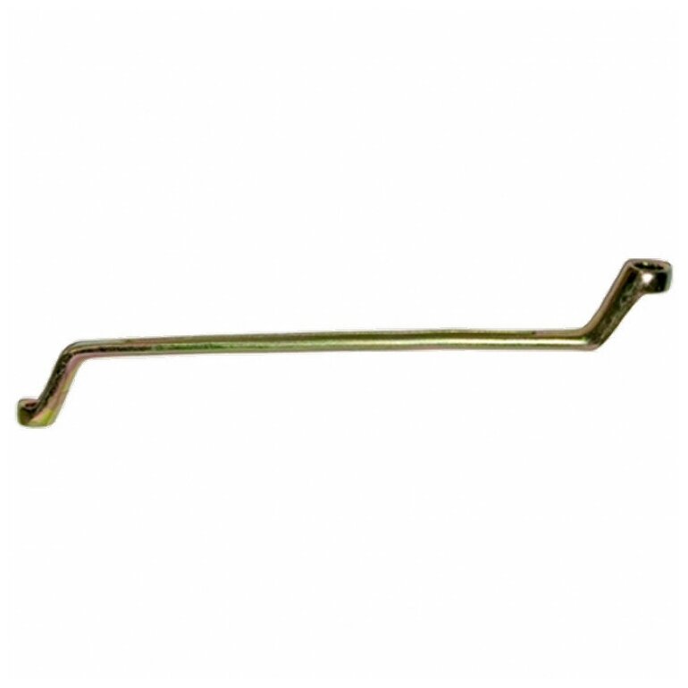 | Прочие особенности и свойства | Ключ гаечный коленчатый имеет два кольцевых зева разных размеров., Профиль кольцевого зева имеет 12 граней, что увеличивает площадь соприкосновения рабочих поверхностей и снижает риск деформации граней крепежа при монтаже., Накидные рабочие части ключа смещены относительно его рукоятки, что позволяет работать в труднодоступных местах., Изготовлен из углеродистой стали. |