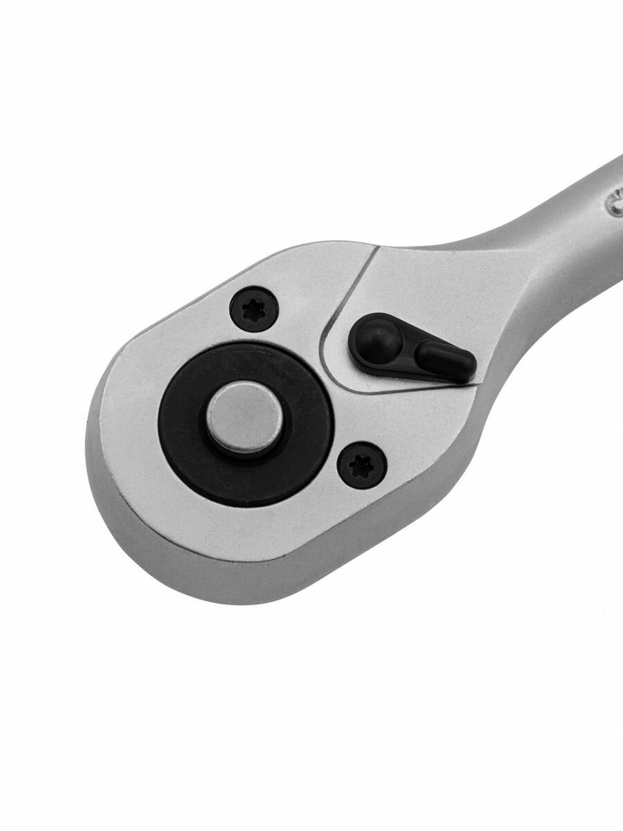 Ключ-трещотка Stels из стали CrV, с присоединительным квадратом 3/8 дюйма, 72 зубцами и быстрым сбросом предназначен для соединения и демонтажа резьбовых крепежей. Совместим с торцевыми головками различных размеров, а также адаптерами и удлинителями. Инструмент работает мягко и плавно благодаря 72-зубому храповому механизму. Шаг трещотки составляет 5 градусов, что облегчает работу в ограниченном пространстве. Инструмент будет полезен в сервисном центре, авторемонтной мастерской, а также пригодится дома, в гараже или на даче.