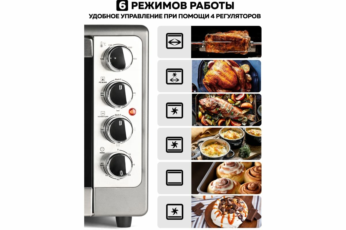 | Режимы работы | верхний и нижний нагрев, верхний нагрев, конвекция, нижний нагрев, гриль, поддержание температуры |
